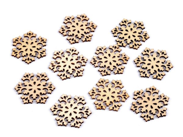 Dřevěné vločky využijete k aranžování, např. svátečního stolu, ale hodí se také na přilepení na vánoční věnce a podobné dekorace. Můžete jimi ozdobit také krabičky, květináče, truhlíky apod.