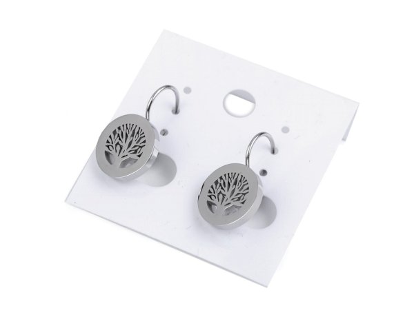 Visací náušnice se stromem života decentně doladí každý outfit. Mají uzavřené mechanické zapínání a vysoký zrcadlový lesk.