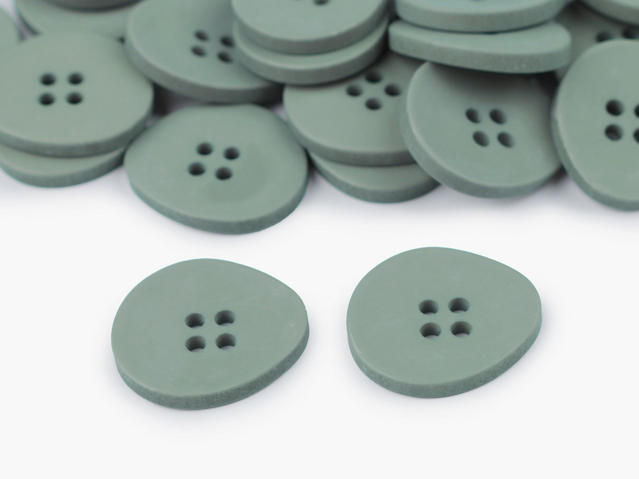 Čtyřdírkové knoflíky zaujmou svým nepravidelným tvarem. Vyniknou na kabátech, svetrech, vestách i třeba na taškách.