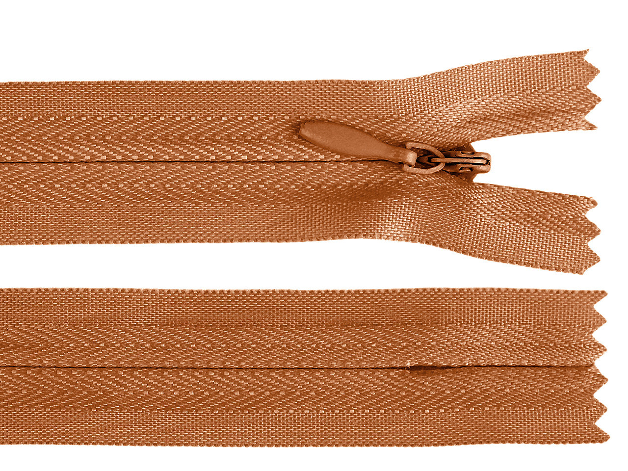 Spirálový nedělitelný zip je díky zakrytí spirály po našití prakticky neviditelný.