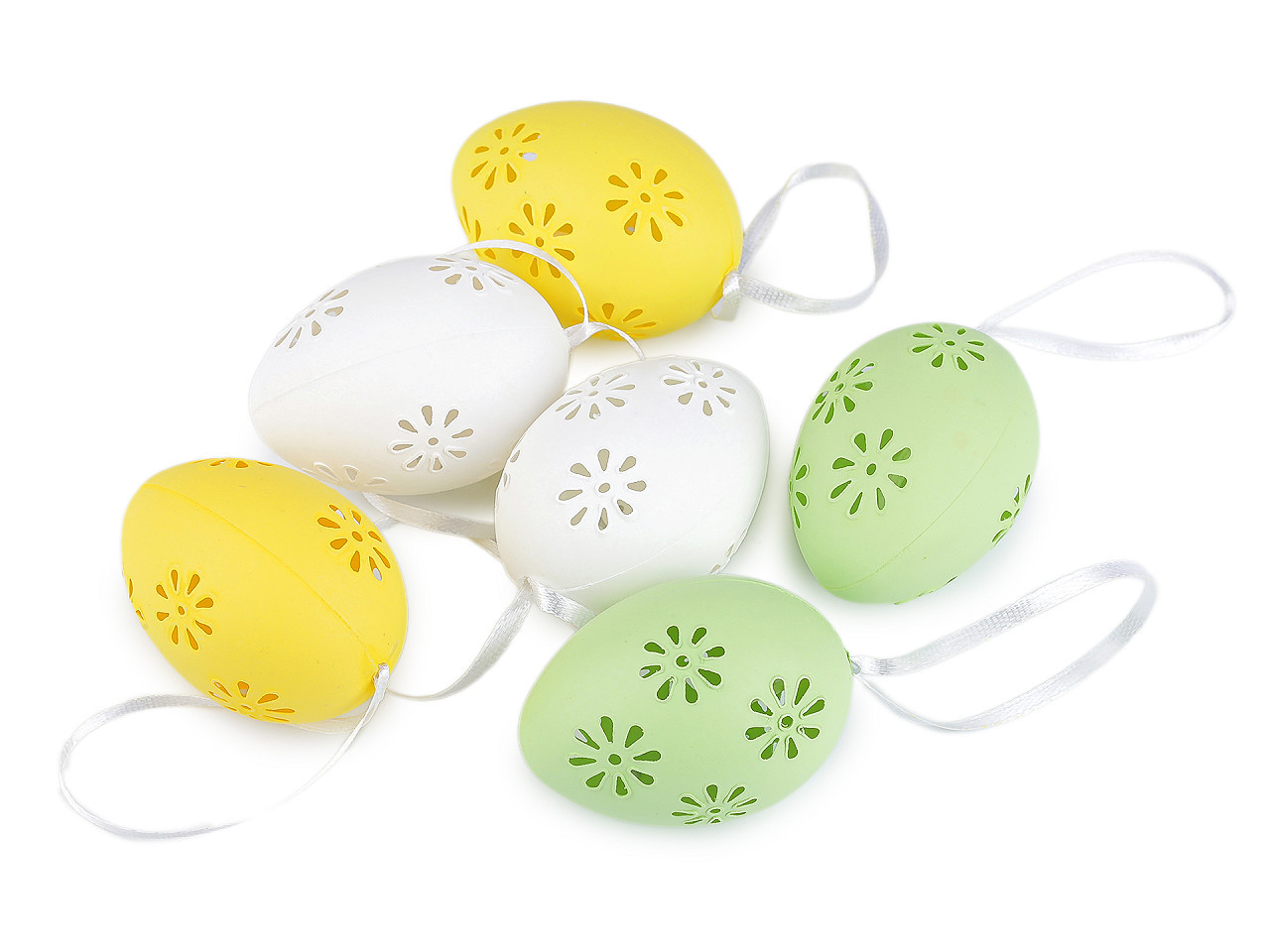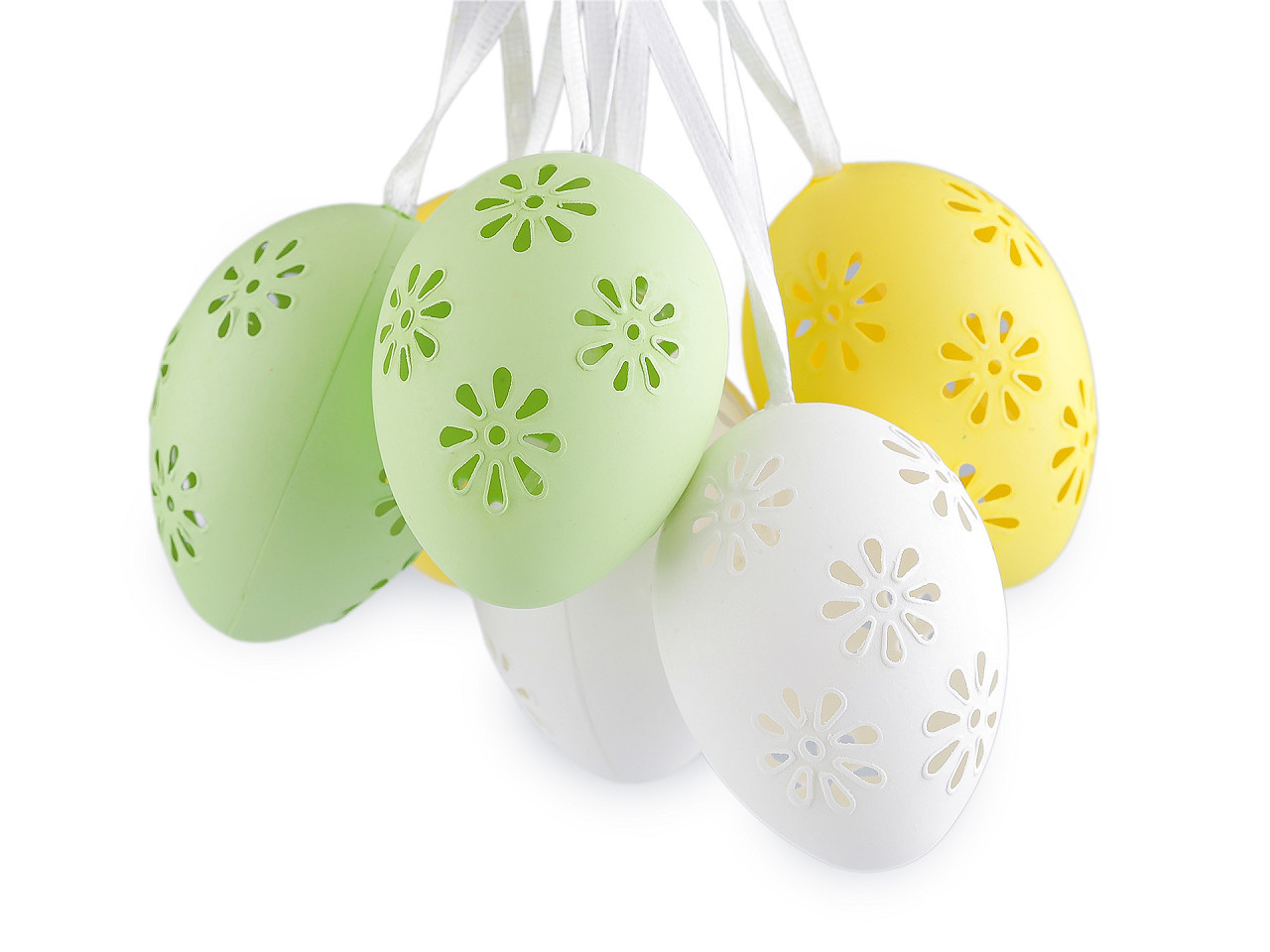 Velikonoční vajíčka s děrovaným designem vám ozdobí věnce, větvičky ve váze apod. Jsou lehoučká, mají poutko ze saténové stuhy. Můžete je ponechat bílé, nebo je pomalovat dle svého vkusu.