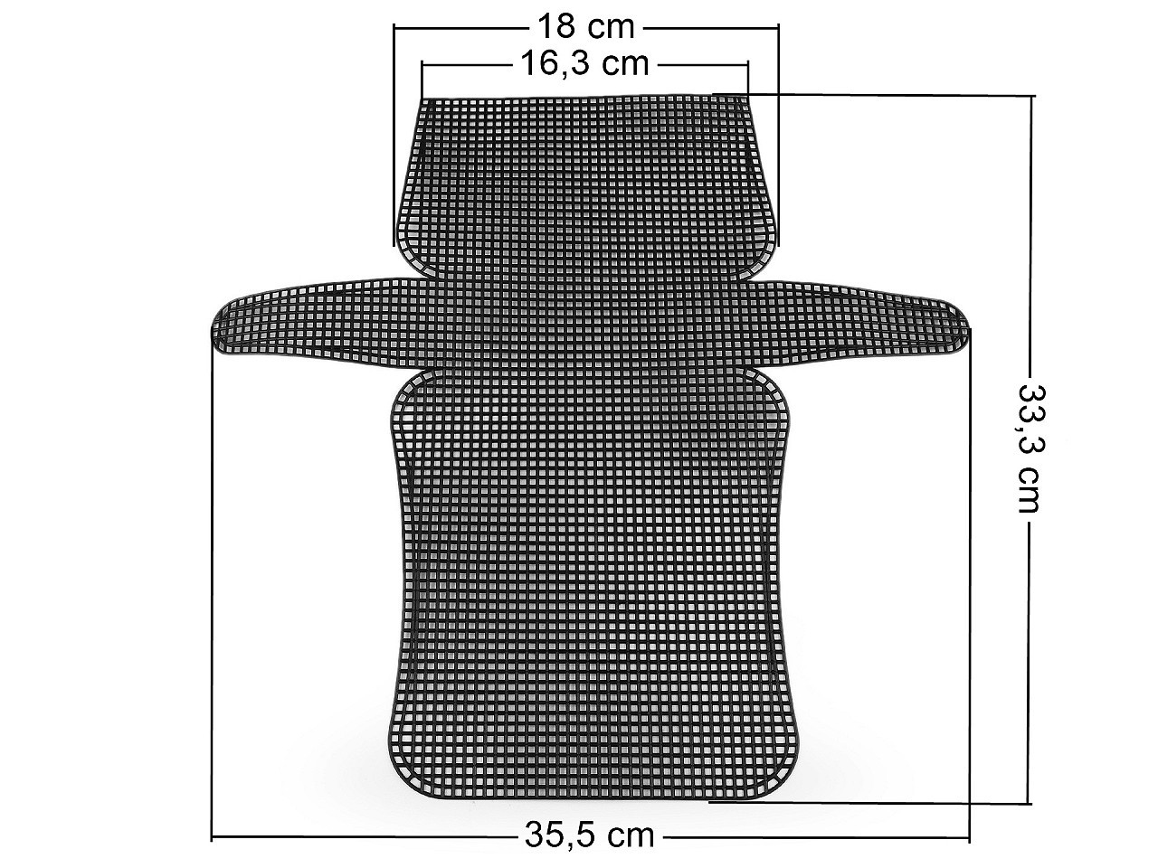 Rozměry jednoho čtverečku jsou 2,5 x 2,5 mm.