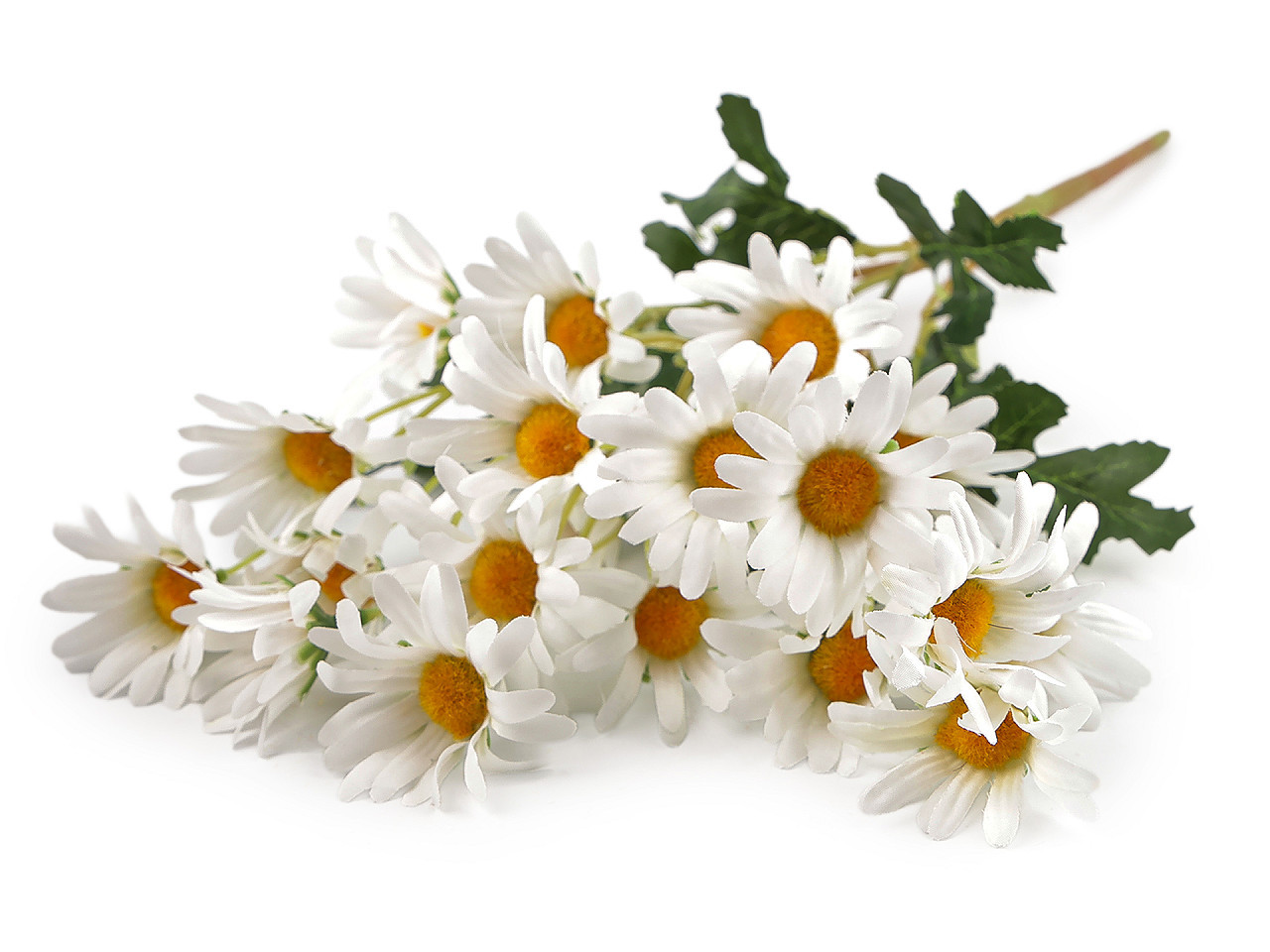 Umělá kytice kopretin – dokonalá dekorace pro každý interiér. Elegantní umělá kytice kopretin přinese do vašeho domova svěží a veselou atmosféru po celý rok. Realistické textilní květy a listy působí přirozeně a díky drátěným stonkům je možné je snadno tvarovat a upravovat. Celou kytici můžete umístit do vázy jako výraznou dekoraci, nebo jednotlivé stonky pomocí kleští oddělit a využít je při tvorbě věnců, truhlíků, ikeban či originálních květinových aranžmá.