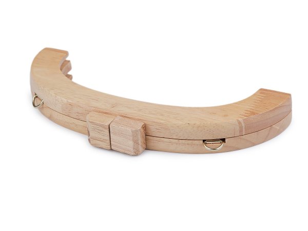Dřevěný rámeček využijete k výrobě kabelky. Uzavírá se silnými magnety, v horní části jsou hranaté úchyty na otevírání. Na každé straně rámečku je zlaté kovové očko k uchycení řetízku.