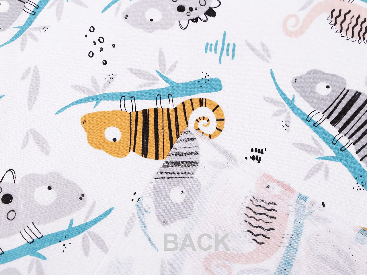 Bavlněná látka s chameleony osloví kluky i holky. Ušijete z ní pytlíky, tašky, povlečení do postele, kapsáře a spoustu dalších věcí.