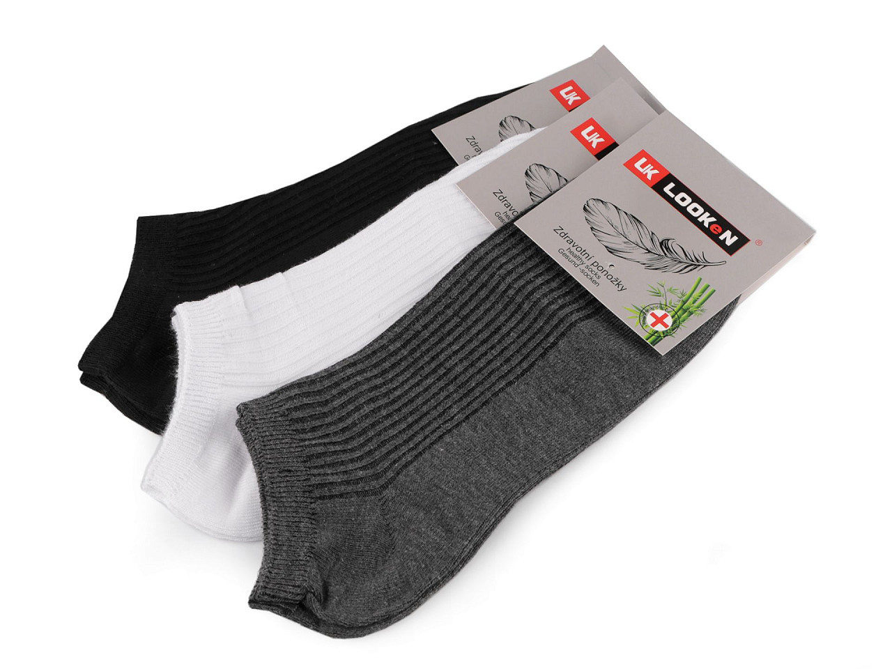 Bavlněné kotníkové ponožky s přídavkem bambusu se příjemně nosí. Jsou řádkované, měkké a prodyšné, dobře absorbují pot. Díky plochého švu ve špičce netlačí. Využijete je denně na běžné nošení nebo do sportovních tenisek.