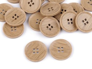 Čtyřdírkové knoflíky mají zesílený okraj a svým zabarvením připomínají strukturu dřeva. Jejich dírky nejsou typicky kulaté, ale mají tvar čtverce. Knoflíky vyniknou na kabátech, svetrech, vestách, sakách apod.