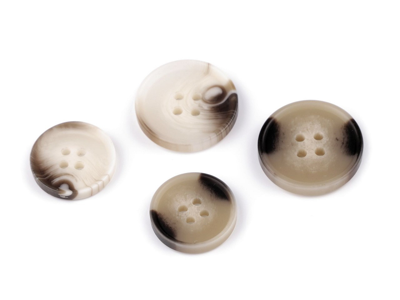 Čtyřdírkové knoflíky se zajímavým designem mají zesílený okraj. Vyniknou na kabátech, svetrech, vestách, sakách apod.