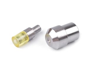 Piston tvoří nedílnou součást lisu. S jeho pomocí se nýtují oboustranné duté nýty Ø5 mm. Piston se skládá ze dvou částí. Větší část pistonu, do které se vkládá nýt, umístíme v dolní části lisu. Druhou část zašroubujeme do lisu a vložíme vhodný komponent k nýtování. Vaše kabelky, boty i oblečení se během chvilky změní v originální kousky.