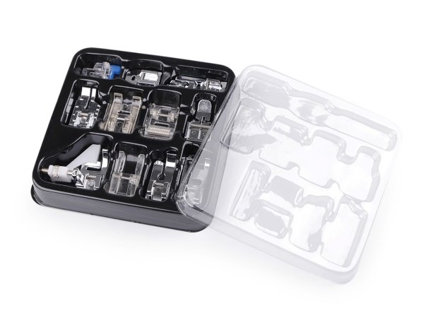 Multifunkční sadu kovových a plastových patek ocení každý, kdo doma rád a často šije. Rychloupínací systém patek je vhodný pro většinu domácích šicích strojů.