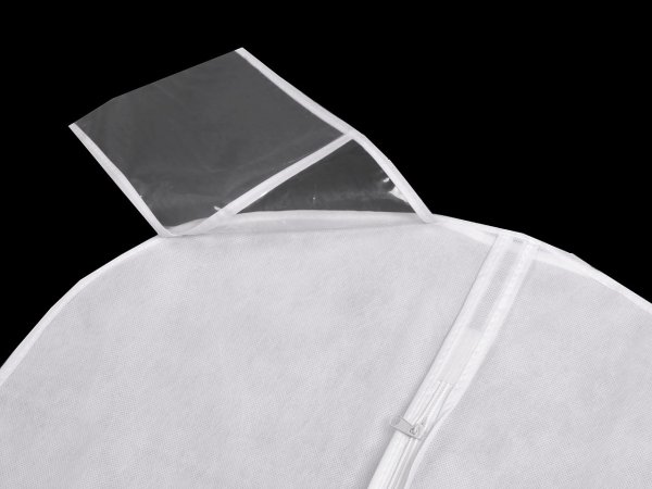 Obal na oděvy ochrání vaše oblečení při jakékoliv manipulaci. Je vyrobený z netkané textilie, zapíná se na zip. U ramene má průhlednou kapsičku (16 x 16 cm) na malé doplňky.