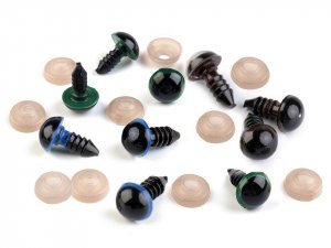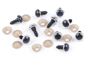 Polokulaté plastové oči slouží k výrobě nejrůznějších postaviček či zvířátek. Mají závit, který se provleče materiálem používaném při výrobě plyšáků. Z druhé strany se nacvakne pojistka, která oči bezpečně připevní na místo.