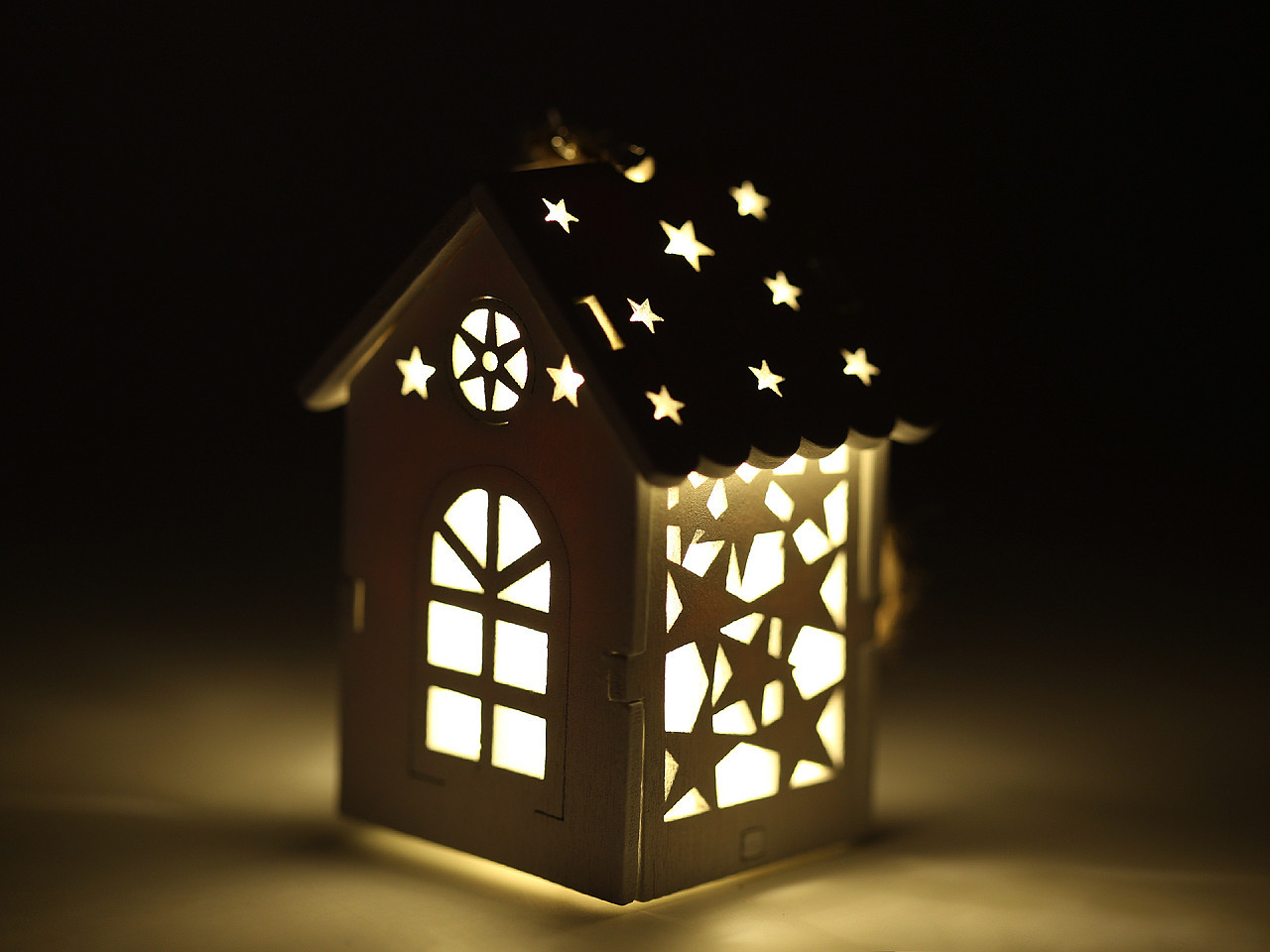 Ozdobte svůj domov kouzelným svítícím dřevěným domečkem. Precizně zpracované výřezy dodávají dekoraci jedinečný vzhled. Díky praktickému poutku jej snadno zavěsíte na vánoční stromeček, věnec nebo použijete jako stylovou ozdobu svátečního stolu. Domeček svítí příjemným teplým světlem, které navozuje útulnou atmosféru. Baterie (3 ks AG10) jsou součástí balení – dekoraci můžete ihned použít.