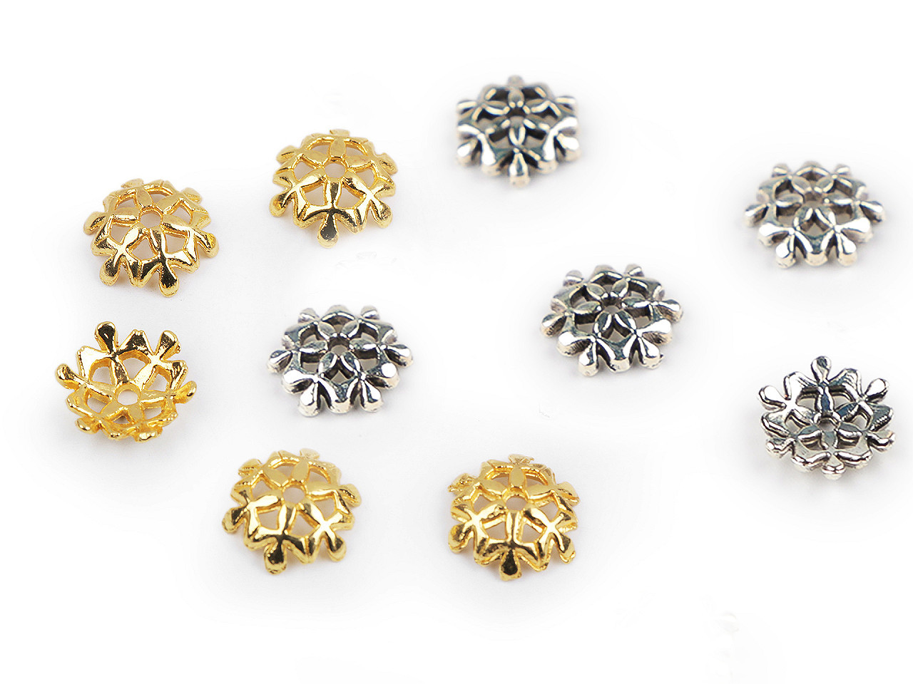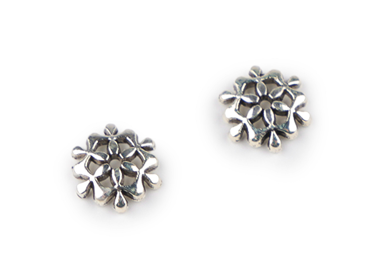 Kovový kaplík využijete na výrobu šperků, ale i jako zajímavý a oživující prvek v široké škále výrobků. Připomíná vločku, tak je vhodný i na vánoční dekorace a výrobu andělíčků z korálků.