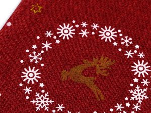 Pytlík s vánočním motivem soba a vloček má zajímavý materiál, který imituje jutu. Je pevný a kvalitní, pohodlně se uzavírá pomocí stahovacích saténových šňůrek. Můžete ho použít na dárky nebo ho naplnit mikulášskou nadílkou. Dá se naaranžovat jako vánoční dekorace.