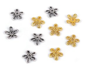 Kovový kaplík ve tvaru květiny můžete využít jako zajímavý a oživující prvek v široké škále výrobků. Je oblíbený např. na ozdobu hlaviček malých dekoračních víl a andělíčků.