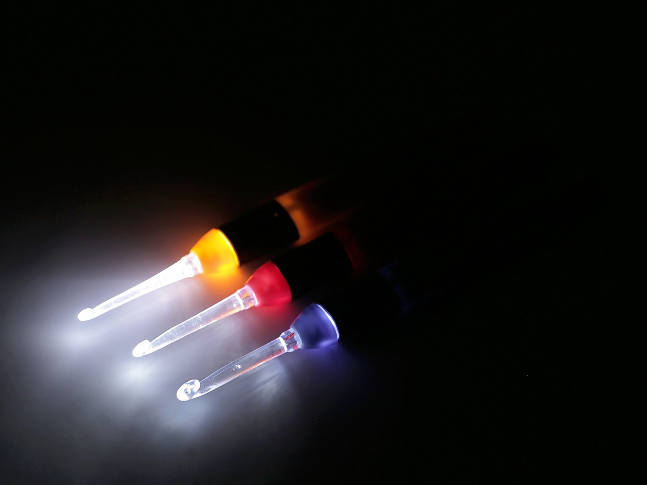Háček s osvětlením oceníte při práci s tmavší přízí nebo při háčkování ve špatně osvětlené místnosti (při večerním háčkování u televize, v posteli apod.).