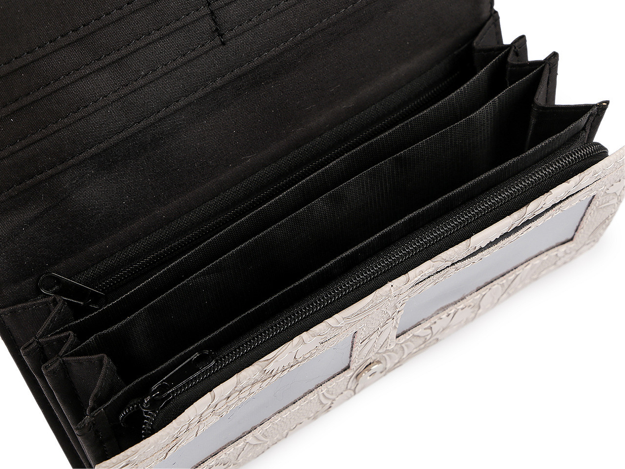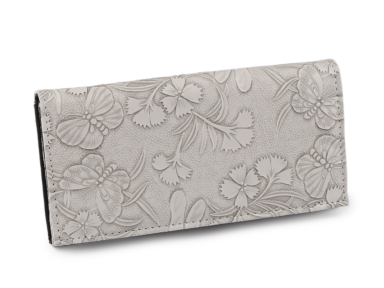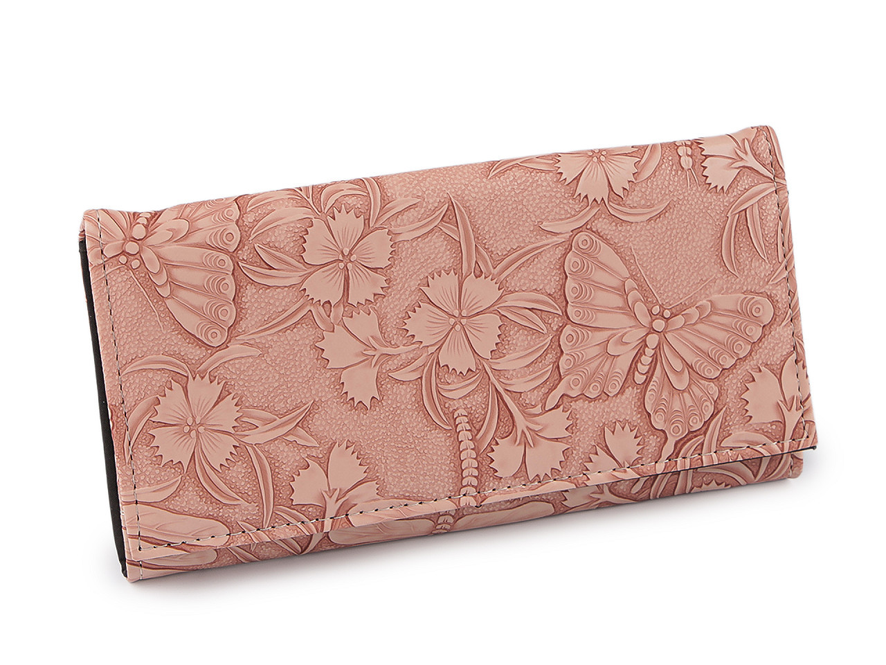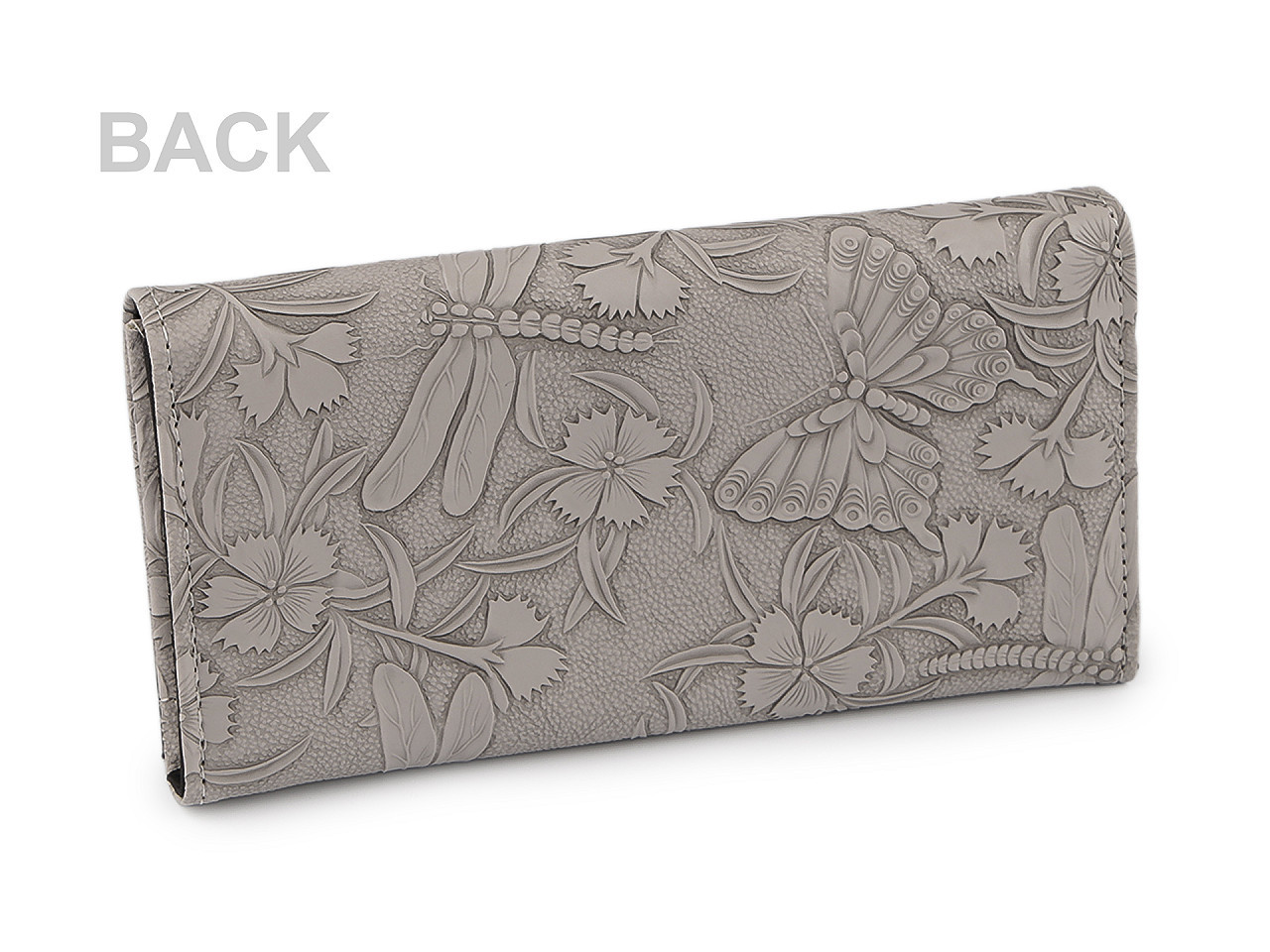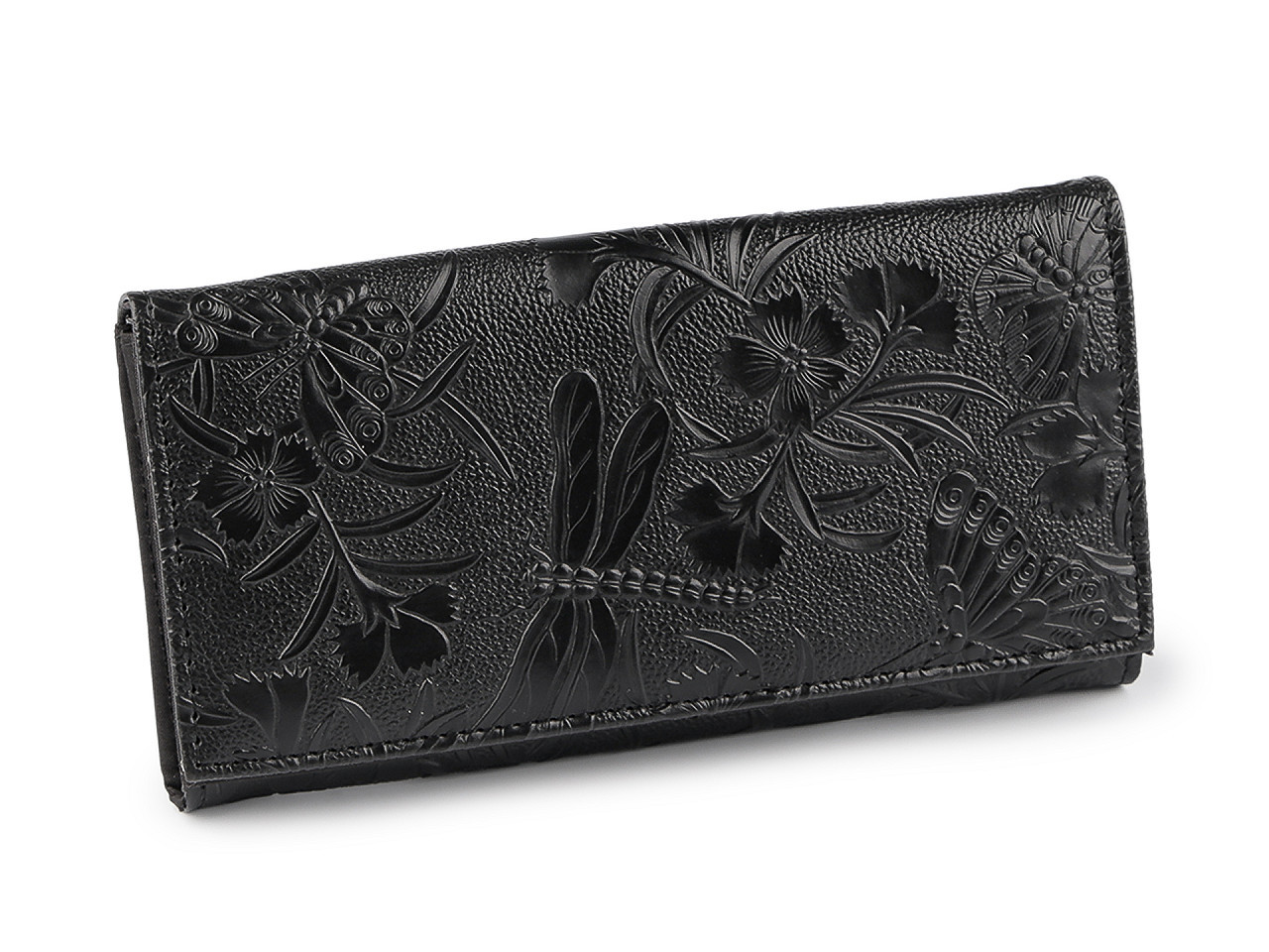 Okouzlete své okolí s touto jedinečnou dámskou peněženkou. Má kvalitní provedení a elegantní matný povrch, který je odolný proti otiskům prstů. Její hlavní kouzlo spočívá v 3D reliéfu vážek a motýlů, který jí dodává neotřelý a vkusný vzhled. Peněženka se zavírá na klopu s patentem. Uvnitř najdete skvěle organizovaný prostor: dostatek přihrádek na karty (včetně dvou průhledných okének), přihrádky na bankovky a velký, zipem uzavíratelný, dělený mincovník.