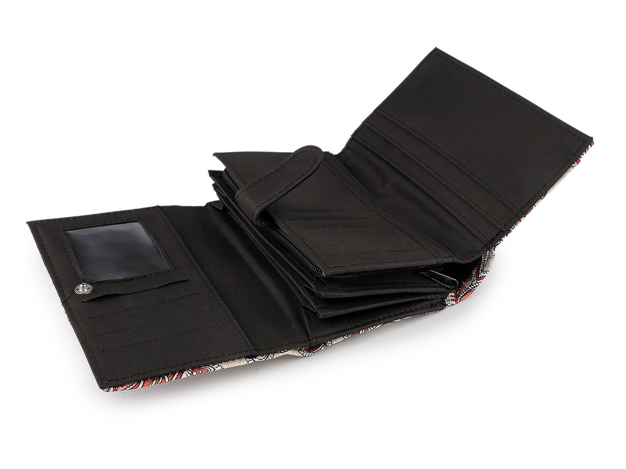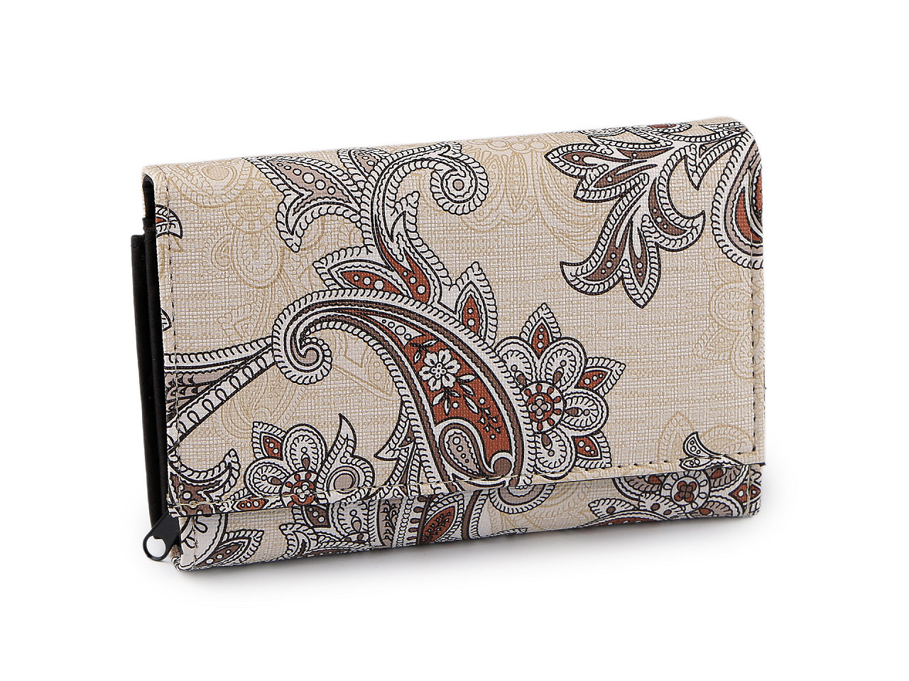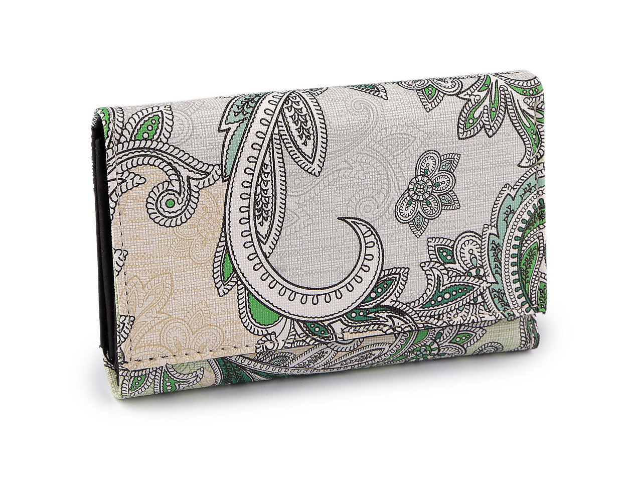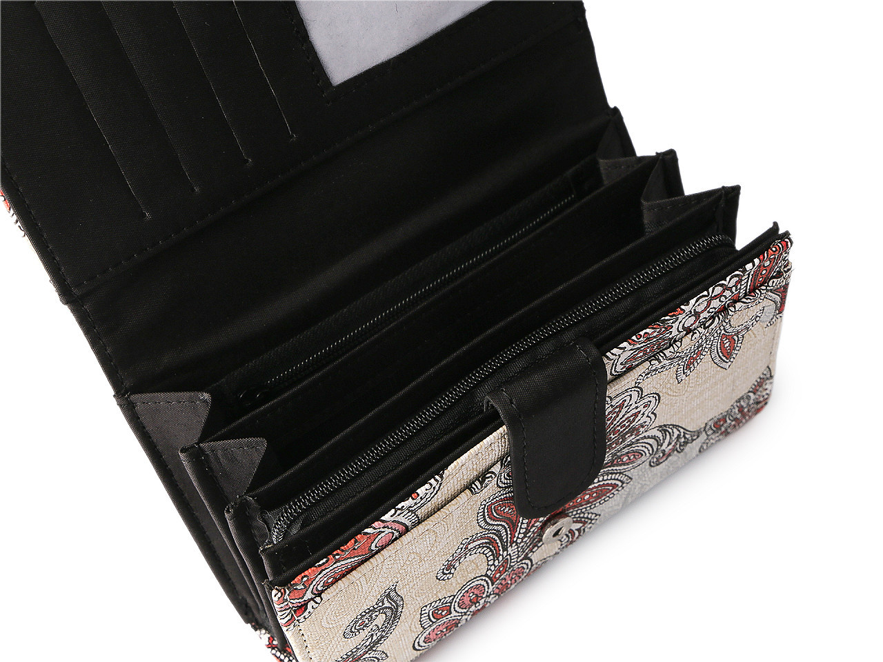 Objevte dokonalou kombinaci stylu a funkčnosti. Tato elegantní dámská peněženka má kvalitní zpracování a poutavý Paisley motiv. Její interiér vás nadchne: nabízí vynikající uspořádání ve dvou oddělených sekcích. V hlavní části najdete prostor na bankovky (včetně jedné zipové kapsičky), 4 přihrádky na karty a samostatný mincovník na zip. Druhý, skrytý oddíl s odepínací zápinkou, poskytuje dalších 6 přihrádek na karty a 5 plochých kapes. Mějte všechny své finance a doklady přehledně na jednom místě.