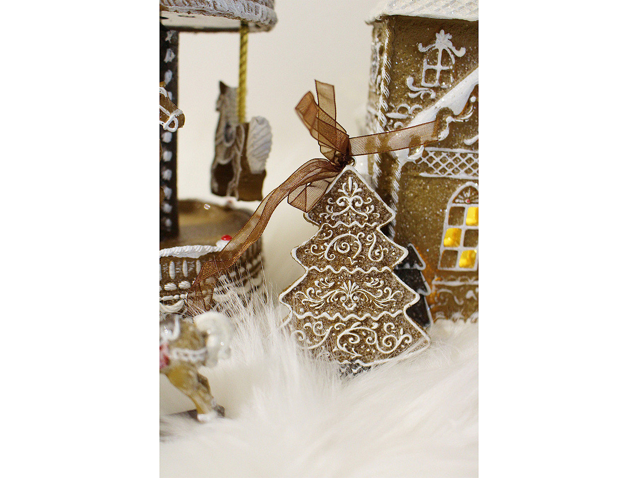 Ozdobte svůj domov originálními vánočními perníčky s motivem chaloupky, medvěda, anděla a stromečku. Tyto dekorační perníčky zaujmou hravými malovanými detaily a třpytivými glitry, které vytváří efekt námrazy. Jsou ideální k zavěšení na vánoční stromeček, věnec nebo dveře. Dekorace je jednostranná. Vneste do svého interiéru kouzelnou sváteční atmosféru.