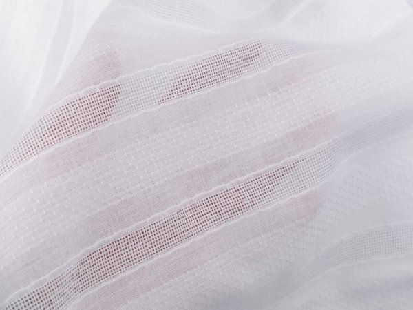 Bavlněná látka svým vzhledem připomíná madeiru - zdobí ji perforované proužky. Na dotek je jemná a příjemná. Využijete ji na šití záclonek, ubrusů, ale i vzdušných sukní a šatů.