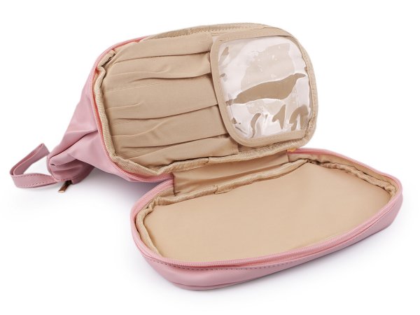 Uvnitř má 2 kapsy, z toho 1 na zip. V dolní částí má oddělený prostor na zip, ve kterém najdete kapsičky na uložení štětců a makeupu. Vše si můžete přehledně roztřídit a uložit.