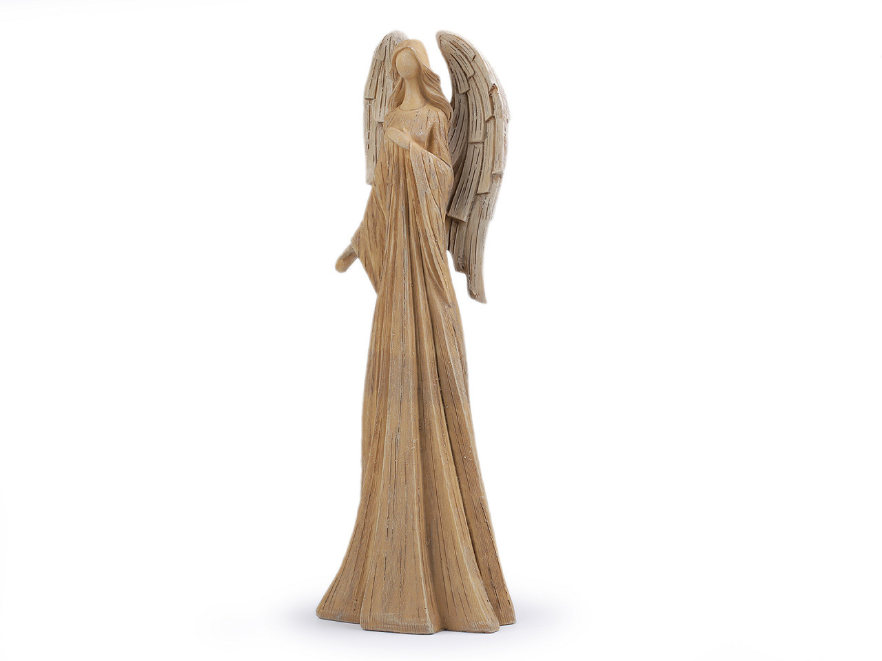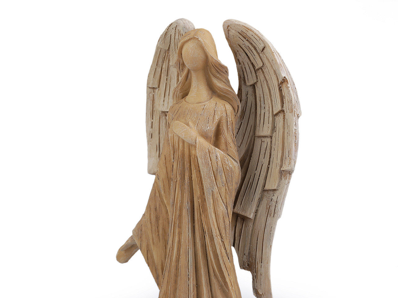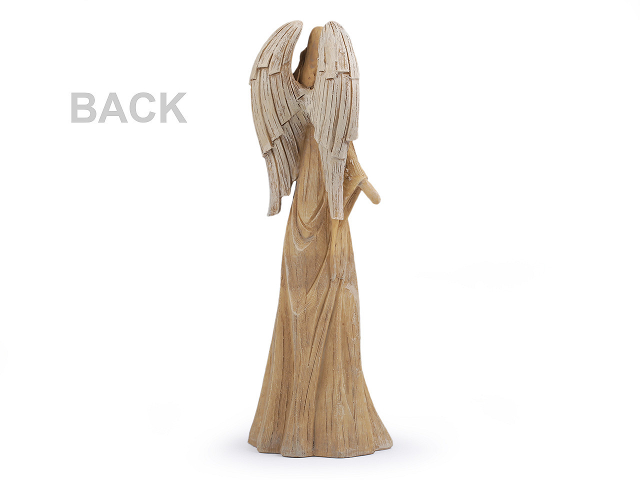 Větší soška anděla se stane oblíbenou celoroční dekorací. Do interiéru vnese pocit klidu a bezpečí. Její barevnost a zpracování věrně napodobuje dřevo. Má malou hmotnost, ale přitom pevně stojí. Jako dárek potěší všechny vaše blízké.