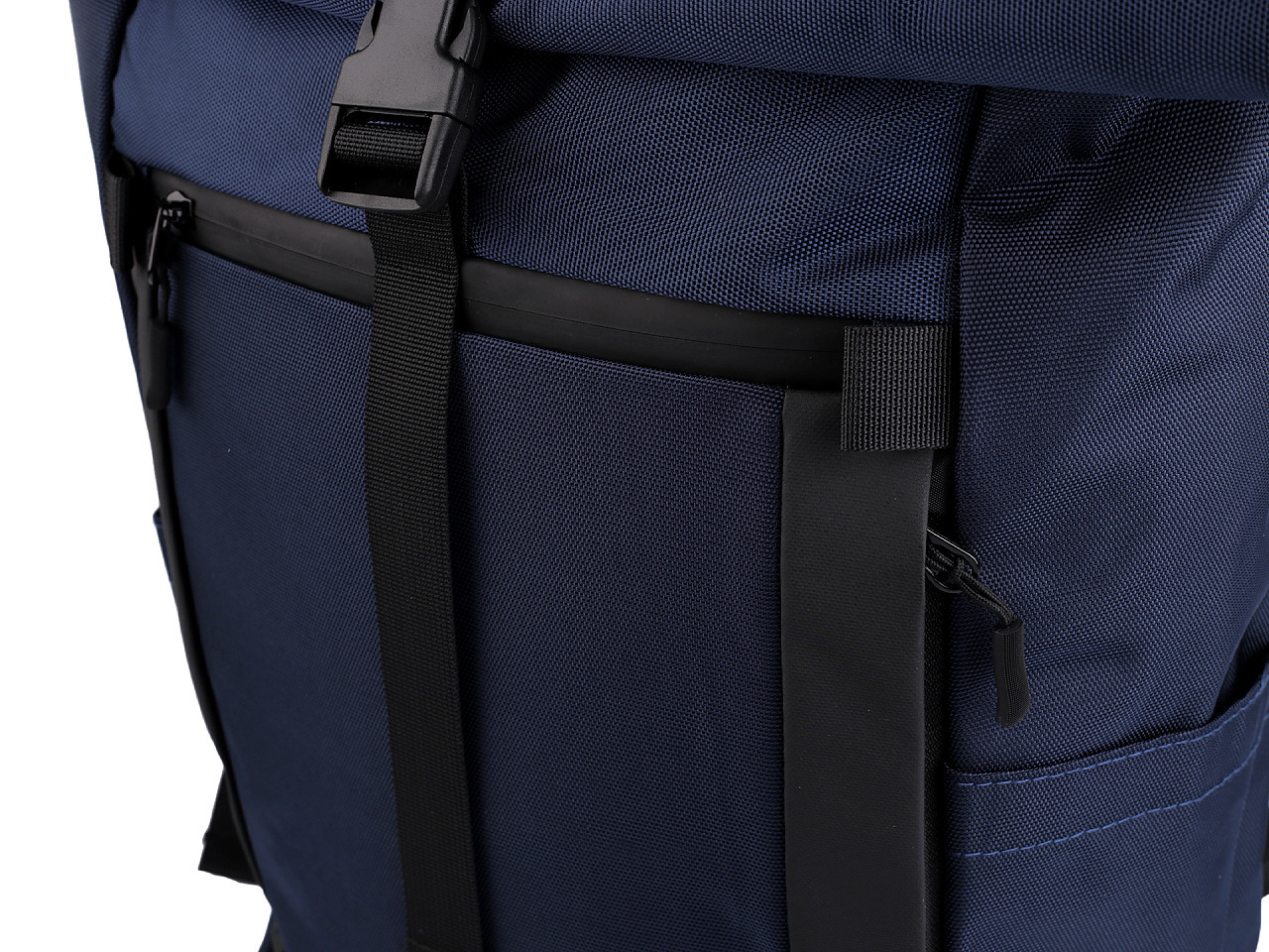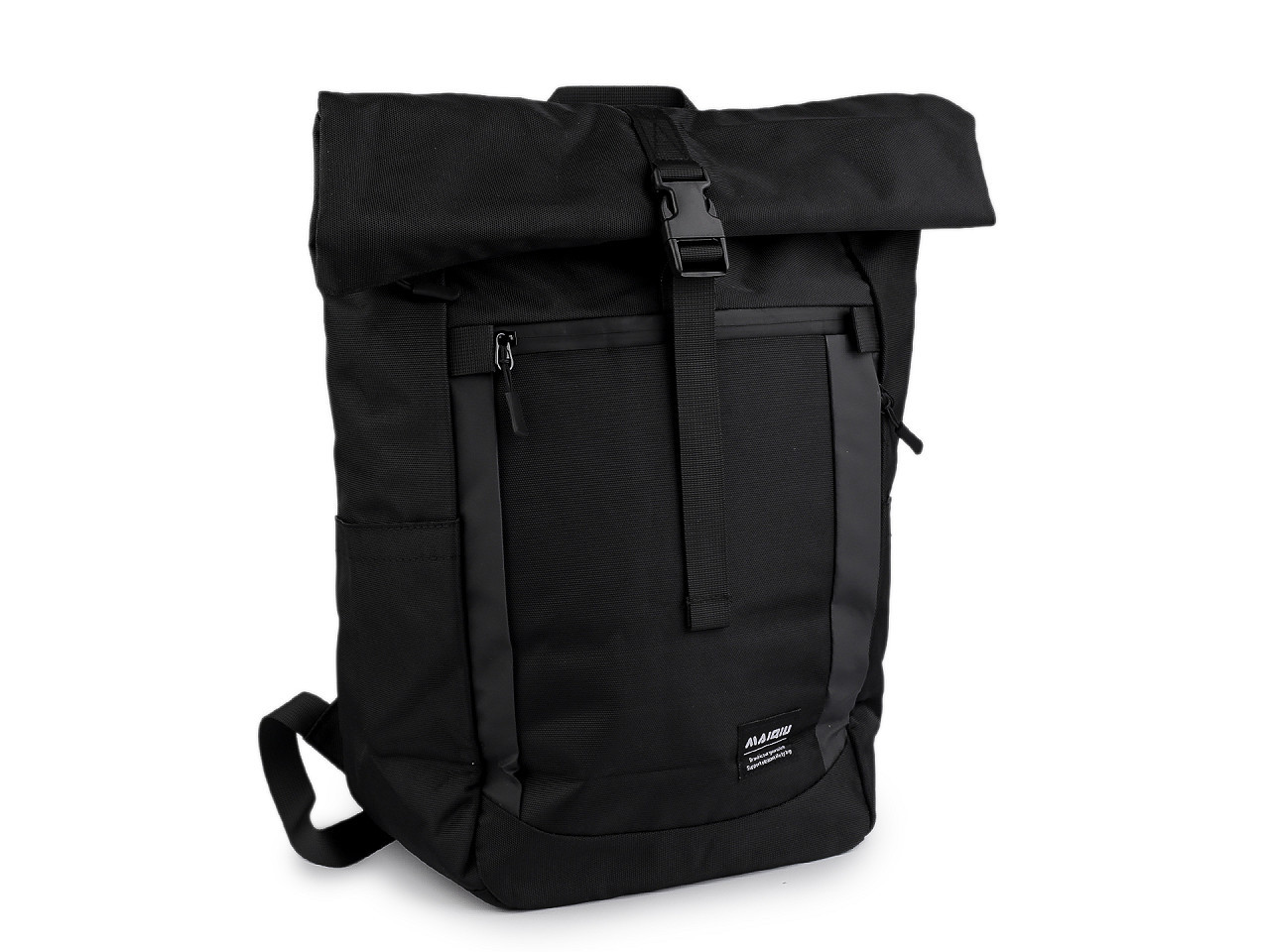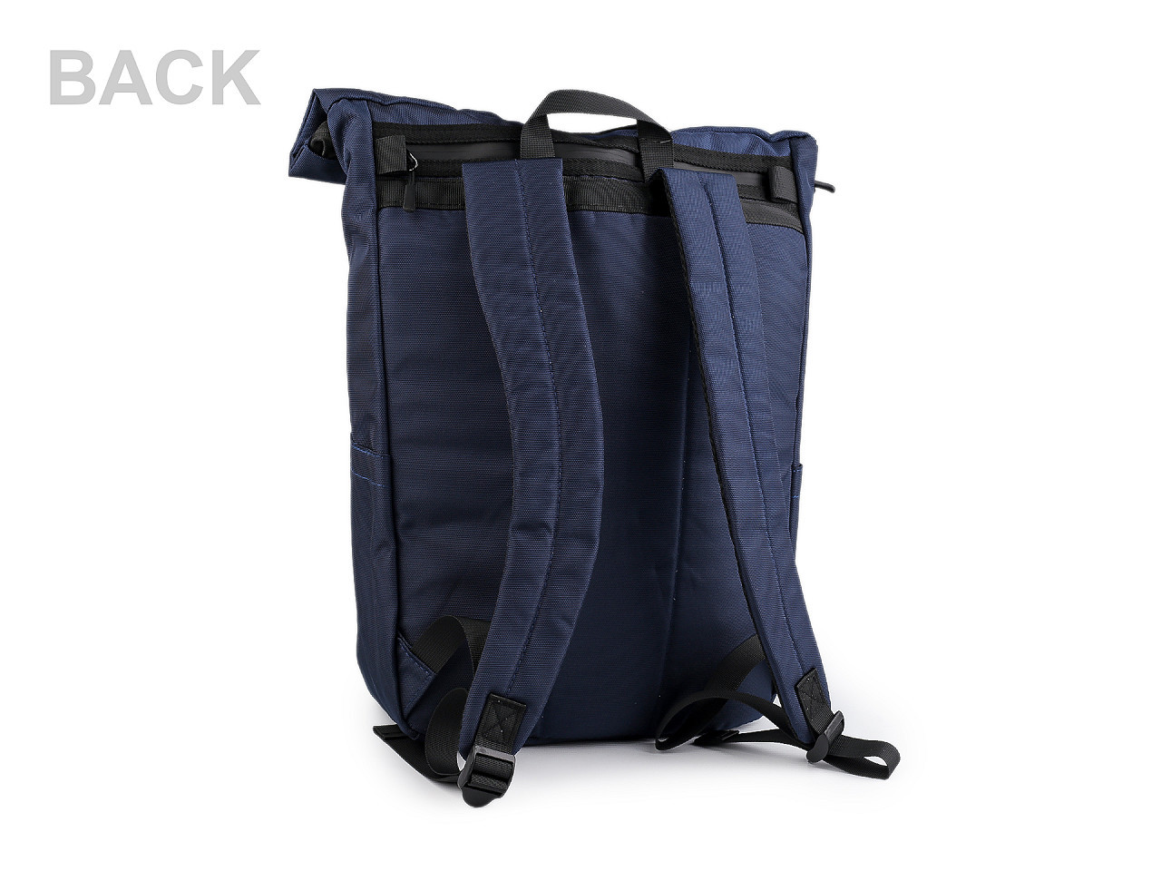 Textilní rolovací batoh se hodí především na výlety, do posilovny nebo do školy. Je mírně tuhý, s nastavitelnými popruhy. Je přesně tak velký, jak zrovna potřebujete. Stačí srolovat zbývající vrchní část a zacvaknout řemínek. Na bocích má 2 praktické kapsy na uložení lahví na pití. Hlavní kapsu má velice prostornou, uvnitř najdete ještě velkou plochou kapsu a kapsy na drobnosti. Na přední straně najdete plochou kapsu na zip. Nahoře má batoh praktické poutko na pověšení.