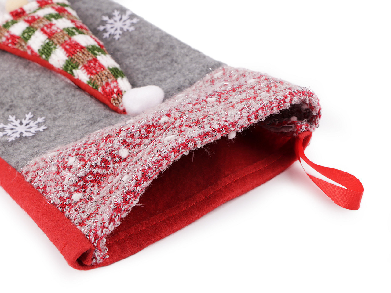 Roztomilá mikulášská punčocha potěší děti i dospělé. Z jedné strany ji zdobí 3D aplikace skřítka se spoustou zajímavých detailů, zadní strana je filcová. Díky dostatečné velikosti se do ní vejdou sladkosti, ovoce i nějaký ten dáreček. Hodí se nejen na zabalení dobrot pro děti, ale i jako poutavá dekorace na Vánoce. Má poutko, za které ji můžete komkoliv zavěsit.