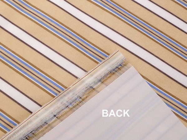 Kočárkovina s pruhy je z rubové strany opatřená nánosem z PVC s vodoodpudivou úpravou, díky tomu je nepromokavá. Je pevná, oděruvzdorná a hrubší. Využijete ji na šití tašek, batohů, potahů, kočárků, pelíšků pro zvířátka, sedacích vaků, lehátek, slunečníků apod.
