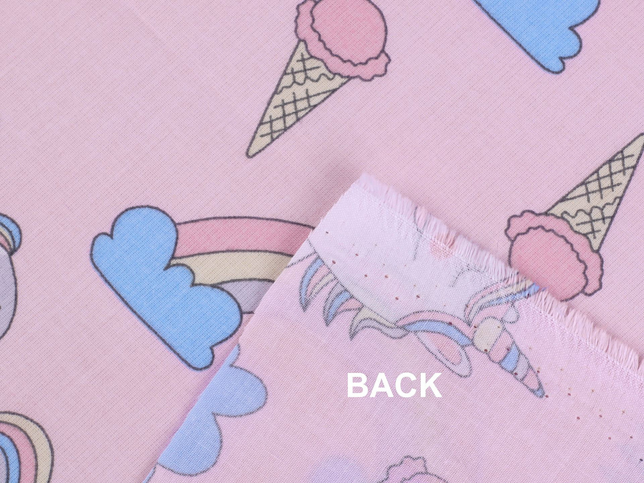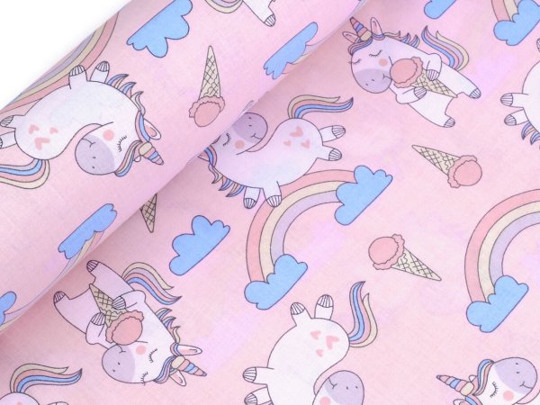 Bavlněnou látku s obrázky jednorožců a zmrzlin využijete na šití polštářů, povlečení, pytlíků, tašek, kapsářů i mantinelů do postýlek.