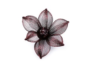 Vzdušná kovová brož květu je ve středu ozdobená broušenými korálky. Okvětní listy jsou z pevné kovové síťky, perfektně drží tvar a mají nádherné kovové odlesky. Brož je velice elegantní, můžete ji využít na společenské události i běžné nošení. Skvěle ozdobí oděvy, kabelky, klobouky a čepice. Na zadní straně má brožový špendlík.