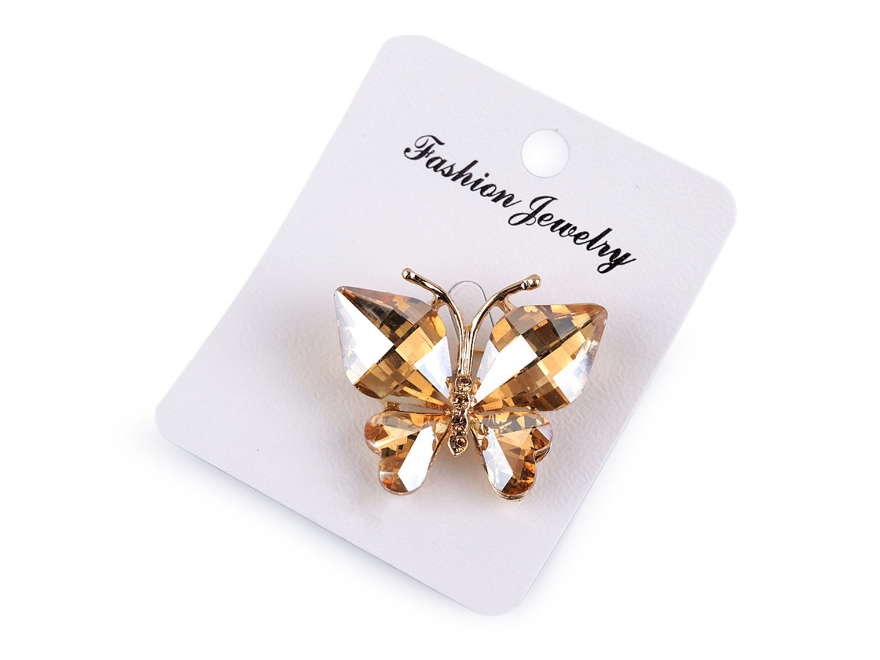 Třpytivá brož motýla je naprosto úchvatná. Motýlí křídla jsou ozdobená broušenými kamínky, které chytají světlo z různých úhlů, čímž dodávají šperku unikátní šarm. Můžete ji nosit na oděvech, kloboucích, taškách či s ní můžete sepnout šátek. Na zadní straně má brožový špendlík.