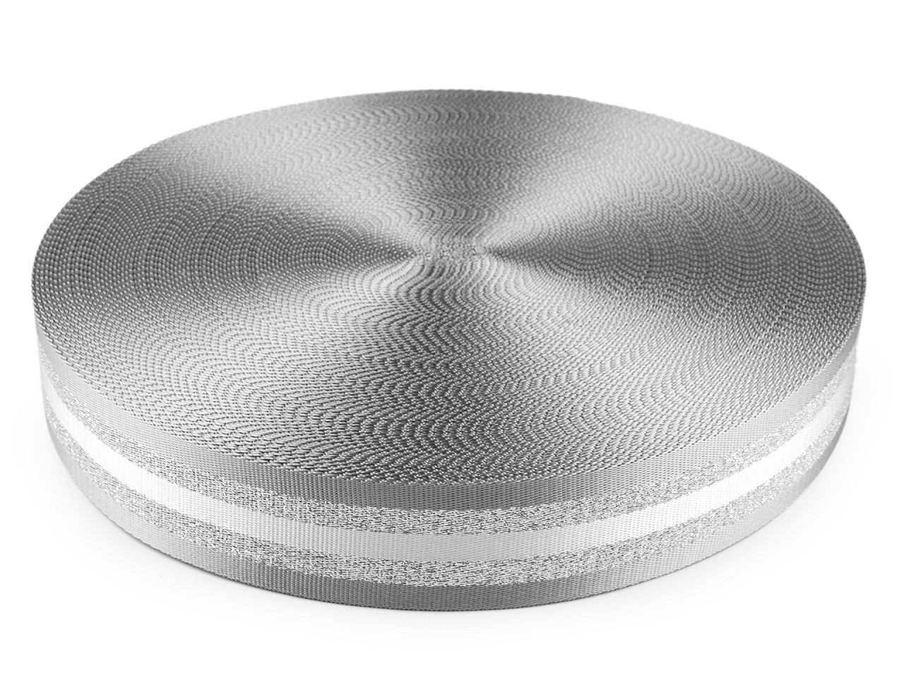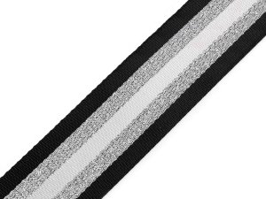 Hladký popruh zdobí lurexové pruhy, které se atraktivně třpytí. Je oboustranný. Vyžijete ho na výrobu tašek, kabelek, batohů, lemování textilních výrobků, jako výplet čalouněného nábytku apod.