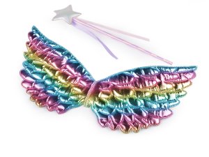 S karnevalovou sadou se každá malá slečna promění ve vílu nebo jednorožce. Sada se skládá z hůlky s hvězdou a metalických křídel v duhových barvách, které se nasazují pomocí gumiček.