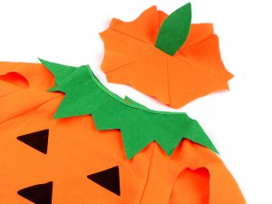Karnevalový kostým promění každé dítko v roztomilou dýni. Je vyrobený z pestrého barevného filcu. Má velké otvory na ruce, zapíná se v zadní části na suchý zip. Ke kostýmu patří čepička s lístečkem, která na hlavě drží díky pružence.