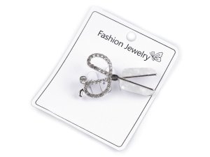 Brož elegantních nůžek bude skvělým dárkem nejen pro švadlenku nebo kadeřnici. Je osázená třpytivými, broušenými kamínky, nožky jsou ozdobené imitací perleti. Ze zadní strany má zavírací špendlík. Efektně působí nejen na oděvech, ale je vhodná i k ozdobení klobouků, tašky či sepnutí šátku.