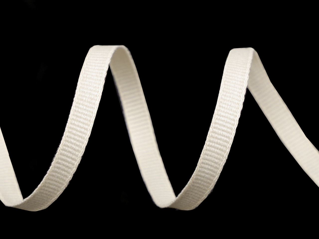 Kvalitní pevná stuha s hrubší rypsovou strukturou je vyrobená z bavlny. Je jednostranná, zadní strana je hladší. Stuha má jemný lesk.