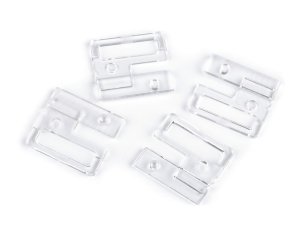Plastové zapínání využijete na plavky. Zapíná se vsunutím jednoho dílu mezi druhý díl a zacvaknutím. Rozměry jednoho dílu spony jsou 35 x 39 mm.