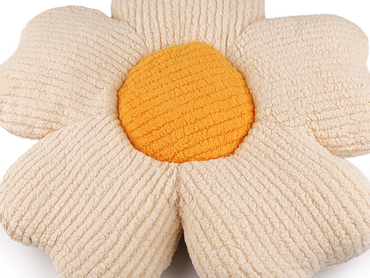 Dekorační polštář ve tvaru květu je vyrobený z řádkované plyšové látky. Je měkký a hebký, bude oblíbenou ozdobou každé postýlky. Design ve tvaru rozkvetlého květu okamžitě oživí každý interiér. Může sloužit jako pohodlná opora i jako estetický prvek.