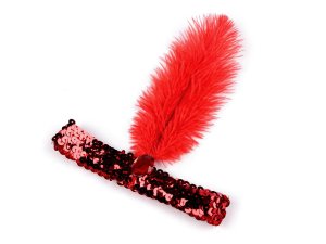Karnevalová čelenka s ozdobným peřím se skvěle hodí k elegantním retro kostýmům. Je elastická, přizpůsobí se své nositelce. Díky flitrům se efektně leskne.