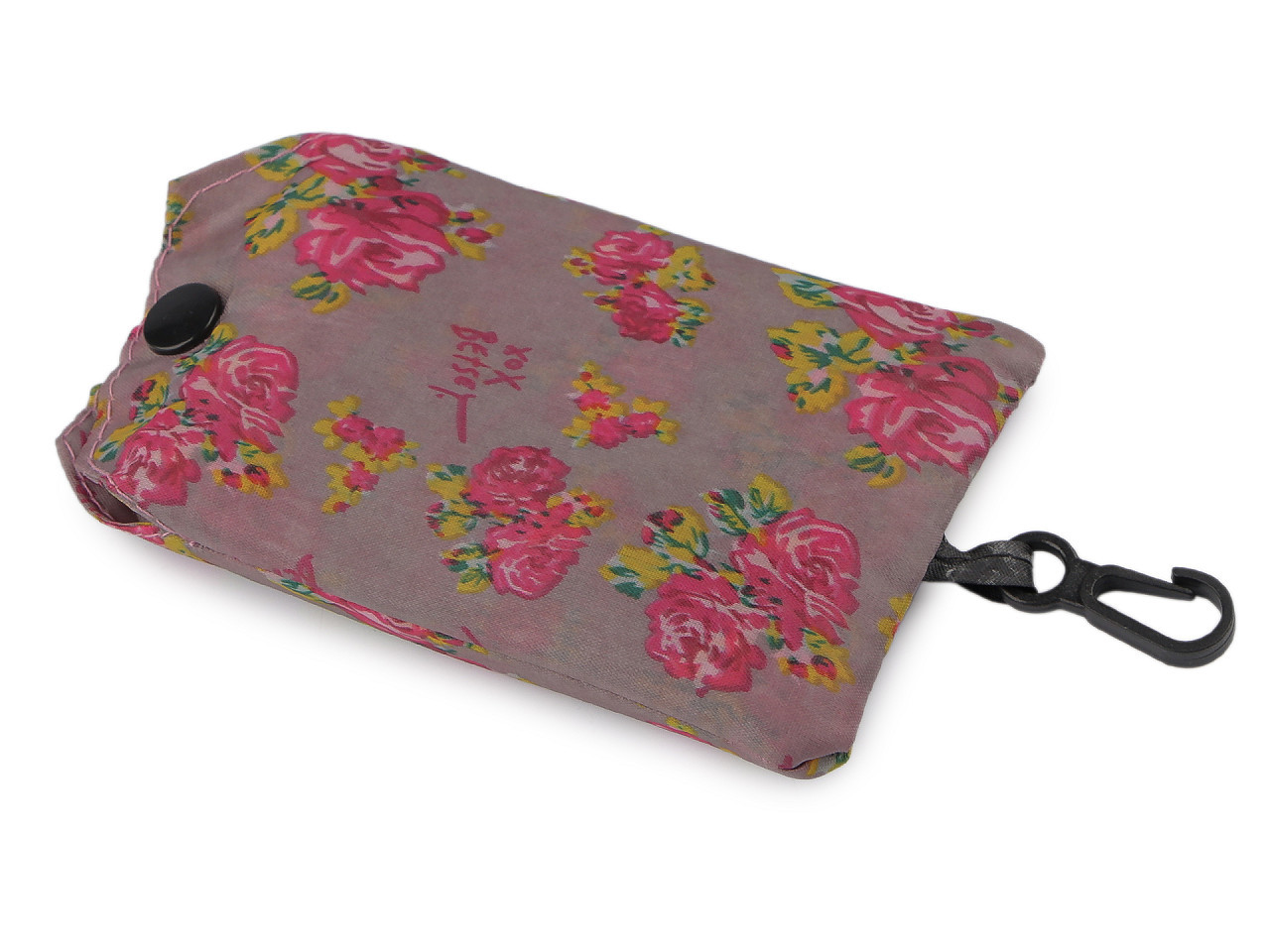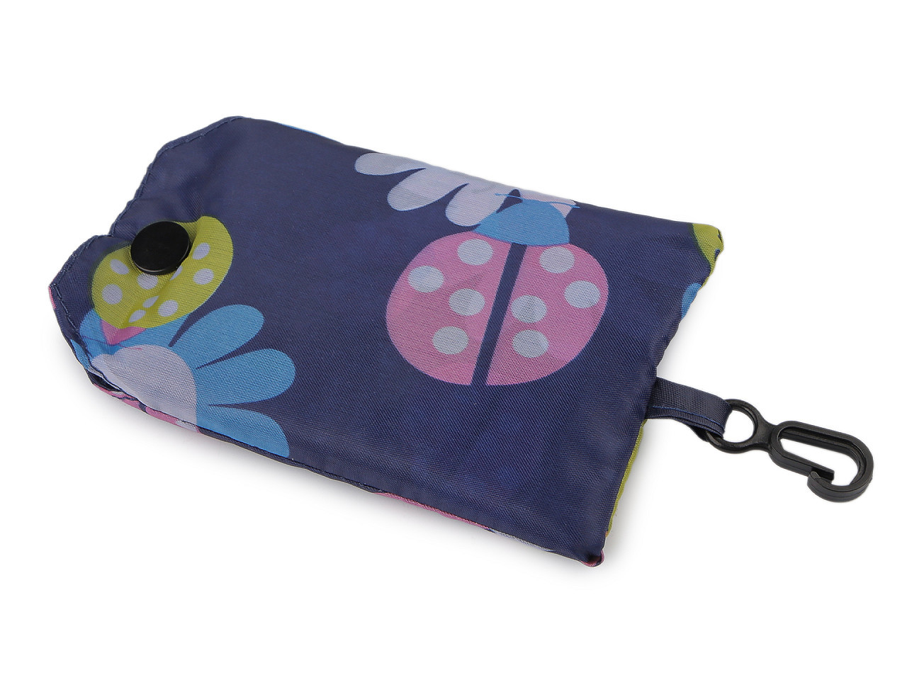 Skládací taška je praktická a skladná, hodí se do každé kabelky. Bude tak stále při ruce, v případě většího nákupu ji jednoduše vytáhnete z malého obalu, ve kterém je složená. Taška je kvalitní a pevná, díky materiálu i snadná na údržbu. Má dvě ucha. Obal se zapíná na patent, má plastovou karabinu na přicvaknutí třeba k poutku riflí. Obal má stejný motiv jako taška uvnitř.