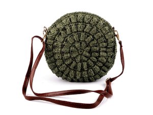 Kulatá háčkovaná kabelka je zajímavým doplňkem v boho stylu. Je vyrobená z papírových provázků z palmy rafie, díky tomu je lehká jako peříčko. Bude stylovým doplňkem vašeho letního nebo festivalového outfitu. Zavírá se na zip, uvnitř má podšívku. Součástí kabelky je nastavitelný popruh na karabiny, kabelku můžete nosit jako crossbody přes rameno či do kříže nebo jen tak v ruce.