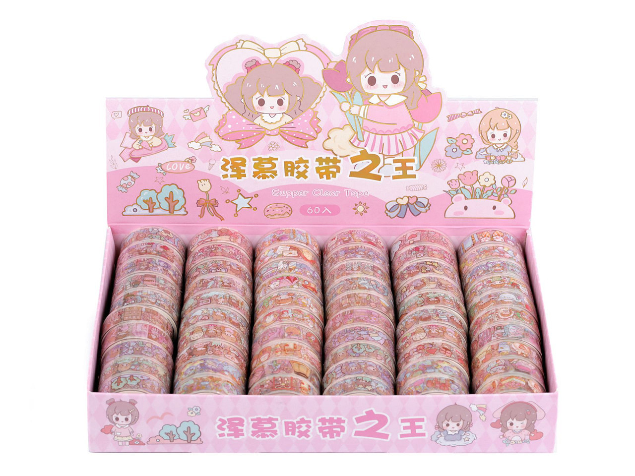 Transparentní samolepicí pásku s obrázky využijete na zdobení přáníček, deníků, dárků, foto rámečků, alb, pozvánek, krabiček apod. Dětmi jsou velice oblíbené na rychlou úpravu školních sešitů. Obrázky jsou zvýrazněné drobnými metalickými detaily. Pásky drží na všech hladkých materiálech, jako je papír, plast, sklo, atd.