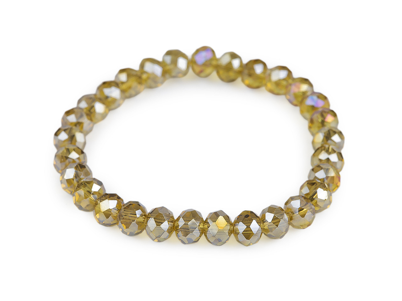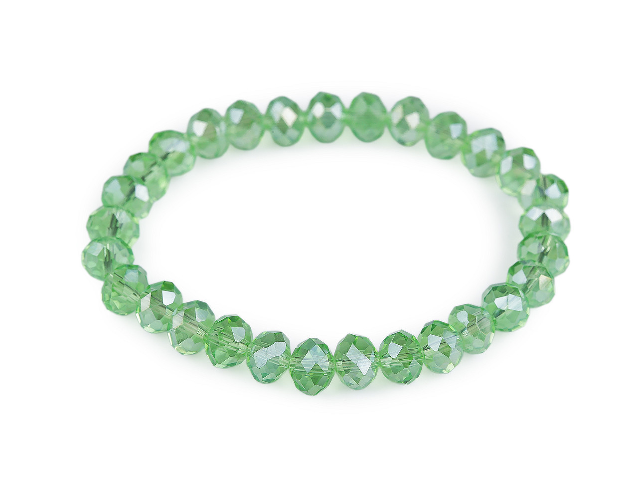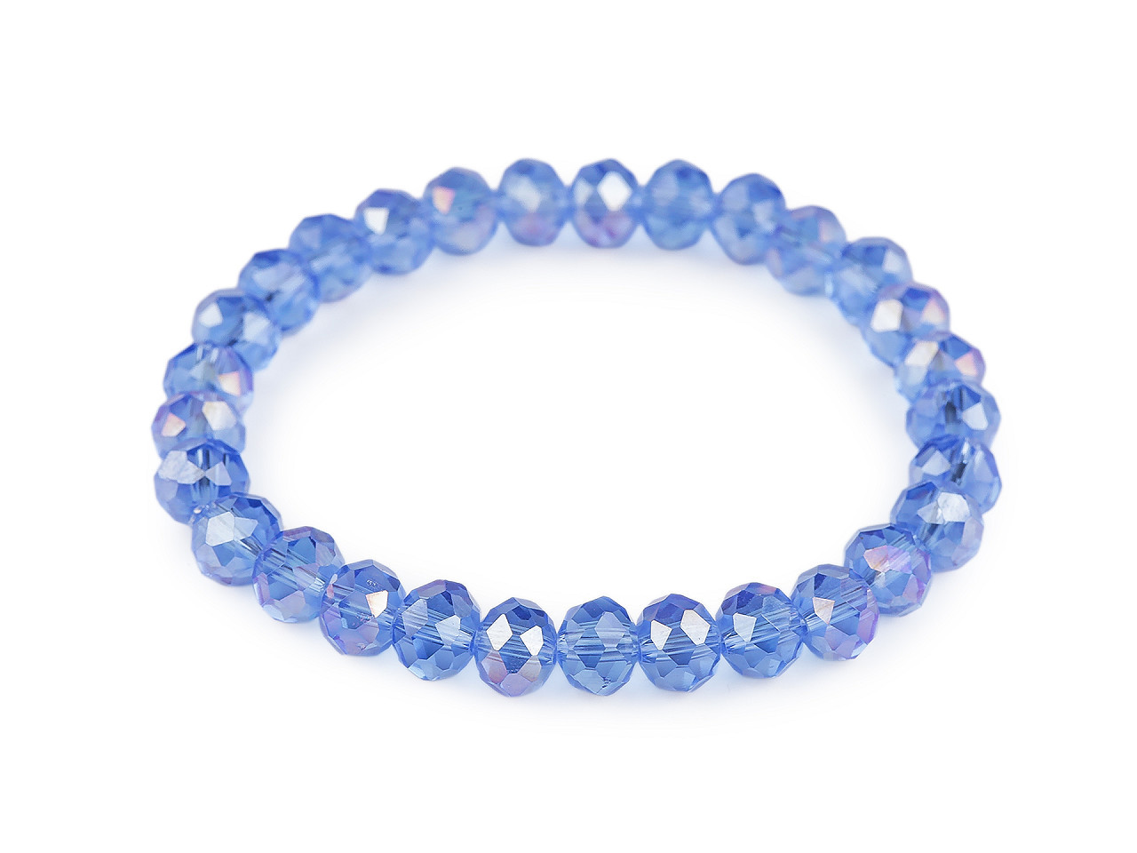 Náramek z broušených skleněných korálků s AB efektem je velice elegantní a efektní. Precizní brus na korálcích způsobuje působivý třpyt a lesk. Díky pružence má náramek univerzální velikost, snadno se natáhne na ruku. Vkusně ozdobí zápěstí na společenských událostech, ale také si ho můžete vzít do práce k halence nebo kostýmku. Zkuste kombinovat více kusů a barev dohromady, výsledek bude efektnější.