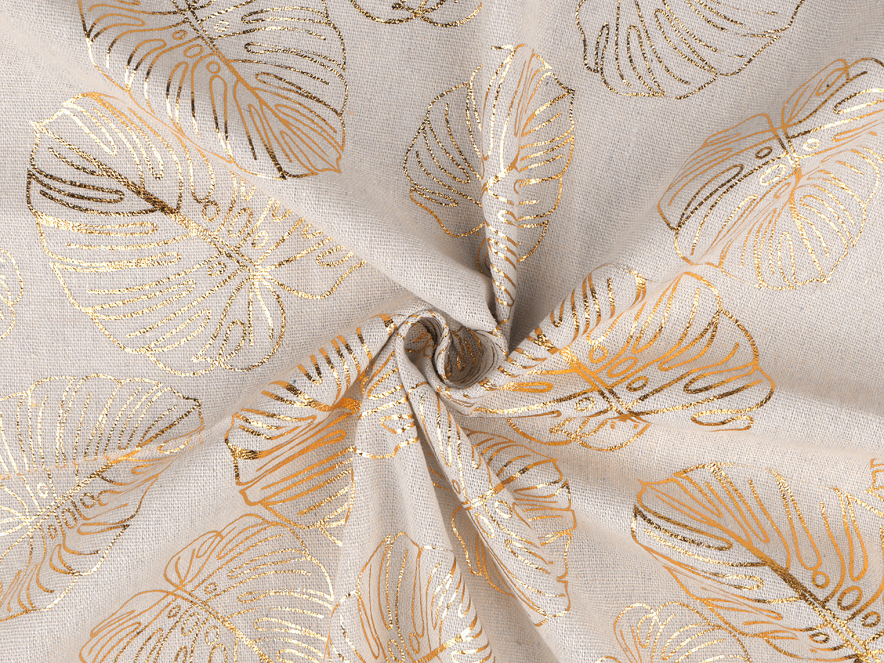 Objevte bavlněnou metráž s imitací lnu a elegantním potiskem tropické monstery – ideální volbu pro originální bytové dekorace i praktické šití. Díky plátnové vazbě působí látka na pohled i dotek jako přírodní len, přesto si zachovává všechny výhody pevné bavlny. Je hrubší a odolná, skvěle se hodí na šití tašek, ubrusů, běhounů, prostírání, dekoračních polštářů nebo dětských teepee stanů.