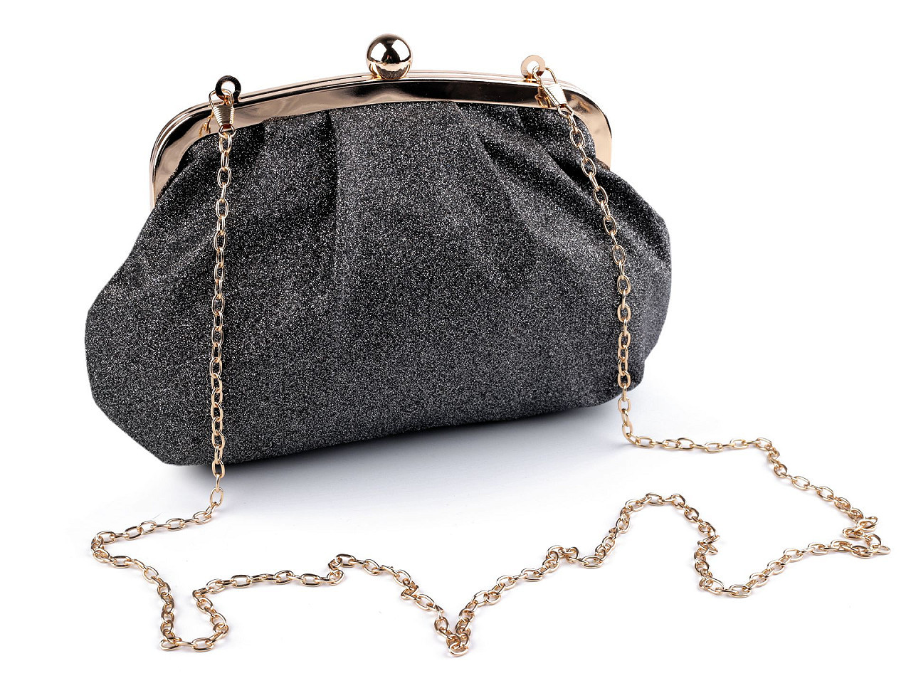 Luxusní společenská kabelka bude skvělým doplňkem vašeho slavnostního outfitu. Její povrch s glitry se třpytí, kabelka je nepřehlédnutelná. Zdobí ji lesklé kovové rámečkové zapínání s kuličkou. Součástí kabelky je i dlouhý odnímatelný řetízek na karabiny. Můžete ji nosit v ruce nebo jako crossbody přes rameno či do kříže.