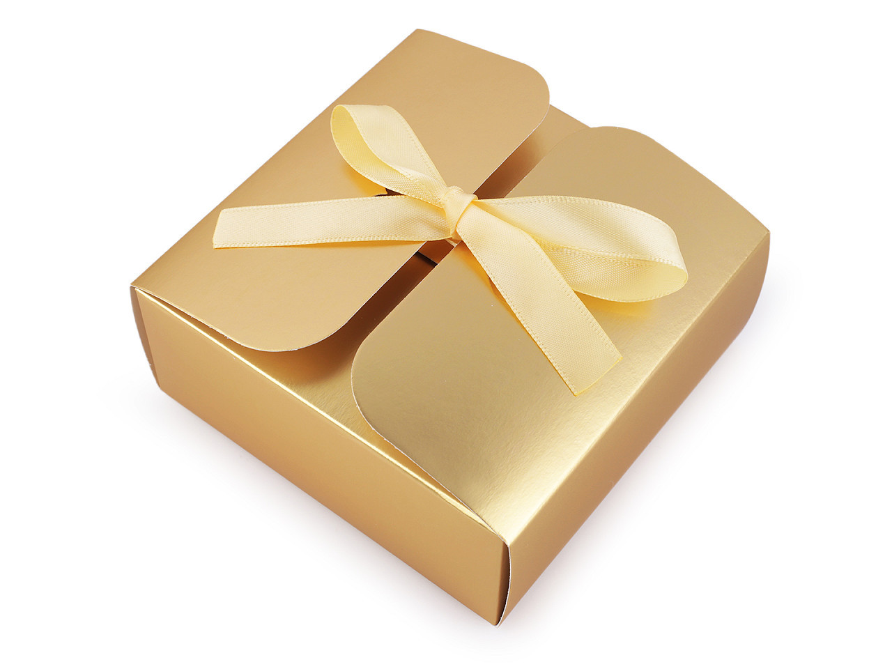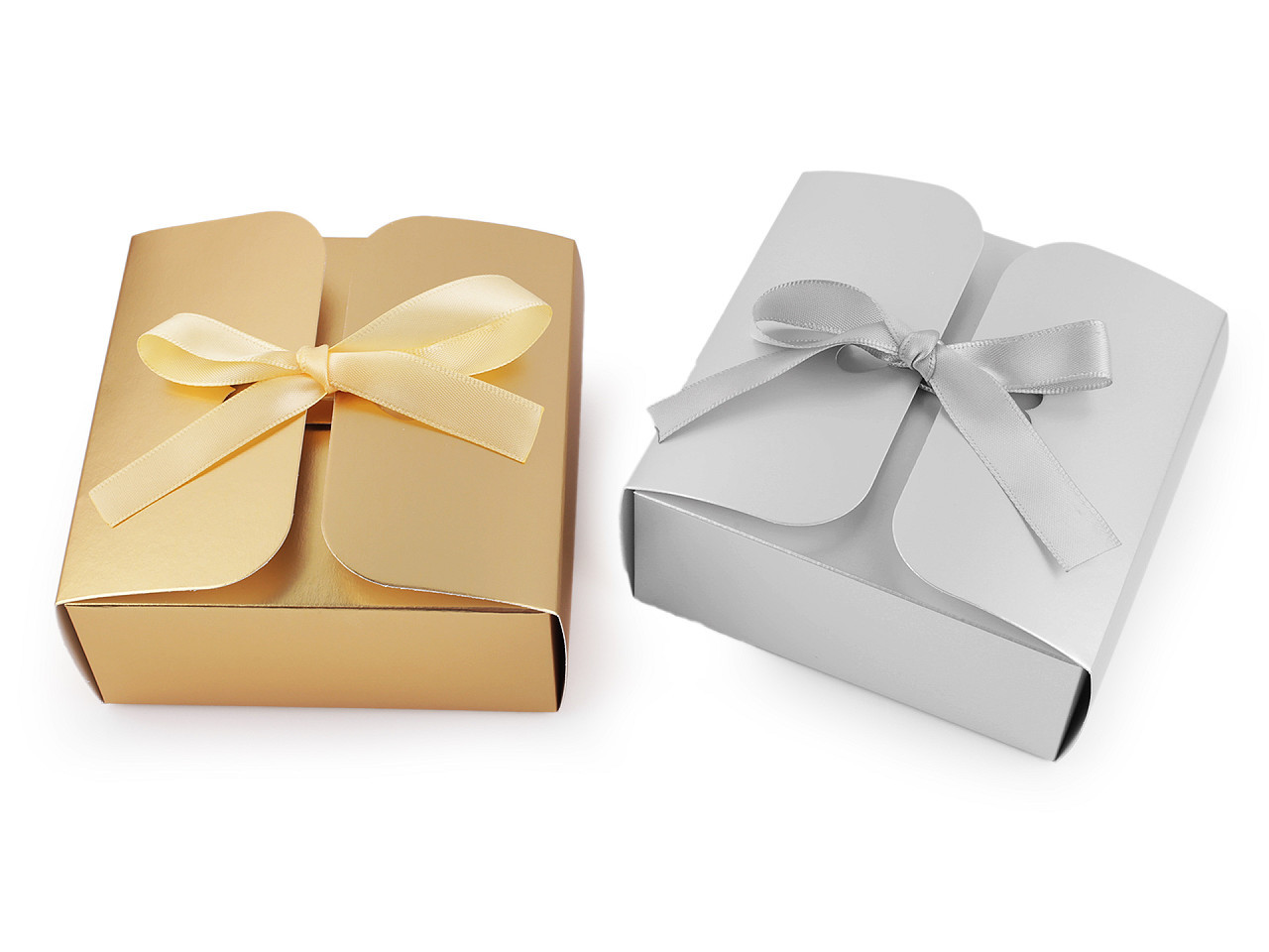 Dárková krabička s poutavým metalickým povrchem potěší každého obdarovaného. Po rozvázání stuhy na něj vykouknou 2 srdíčka, která slouží jako zavazovací otvory. Krabičku můžete použít na malé dárky, je k ní přiložená saténová stuha na zavázání.