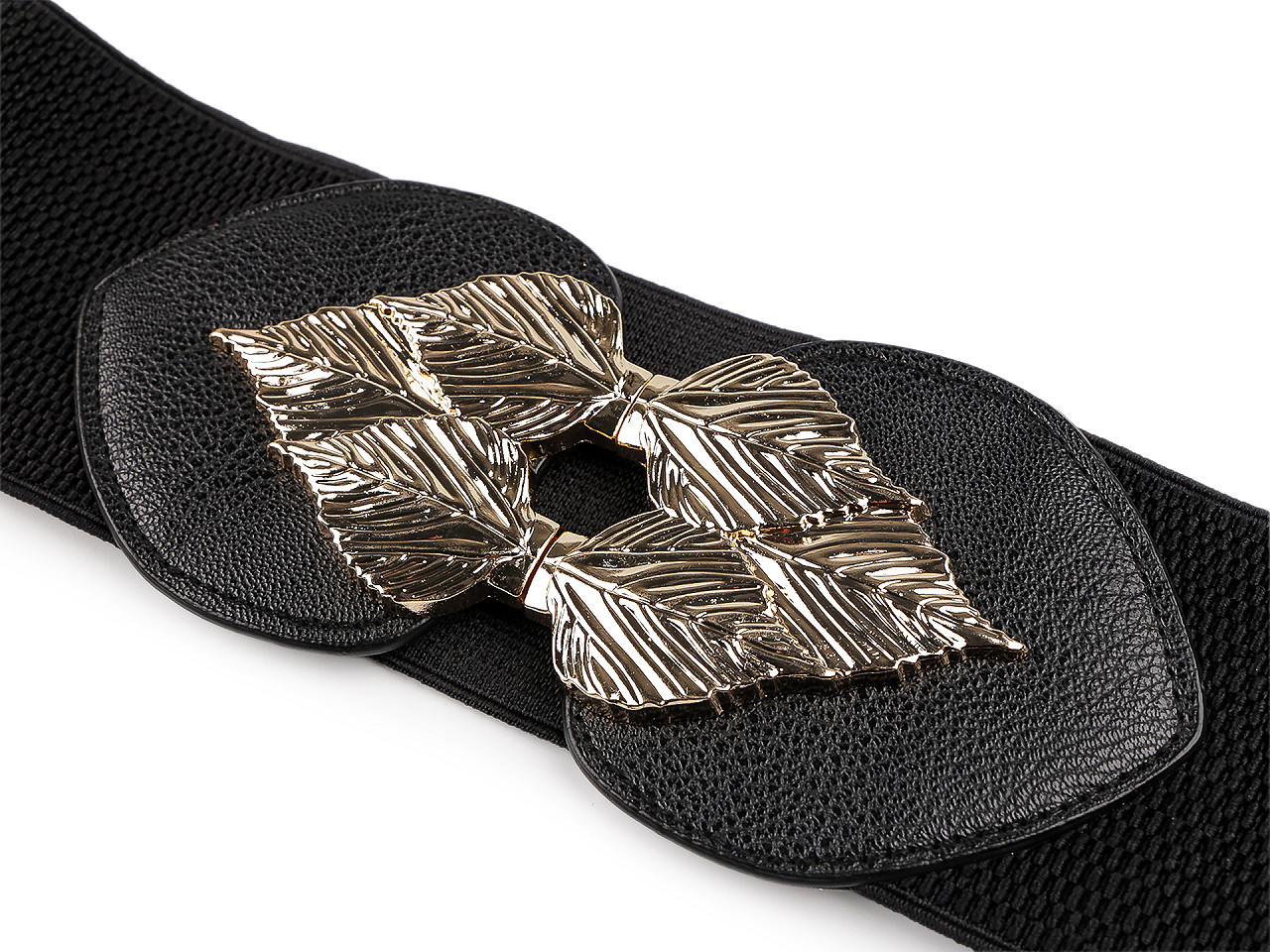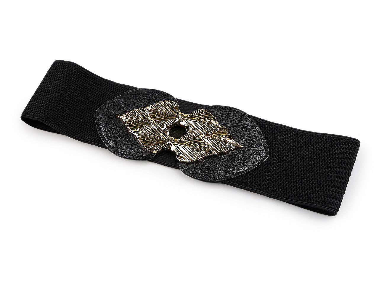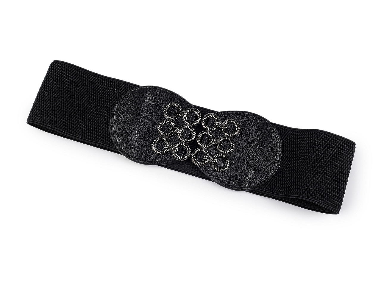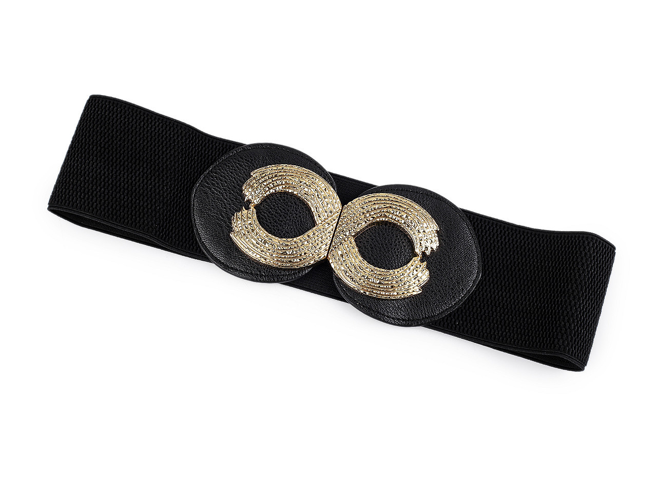 Pružný dámský pásek je vhodný pro nošení k šatům, tunikám apod. Vyniká svou velkou šířkou, má výraznou elegantní sponu, která se zapíná na háčky a očka.