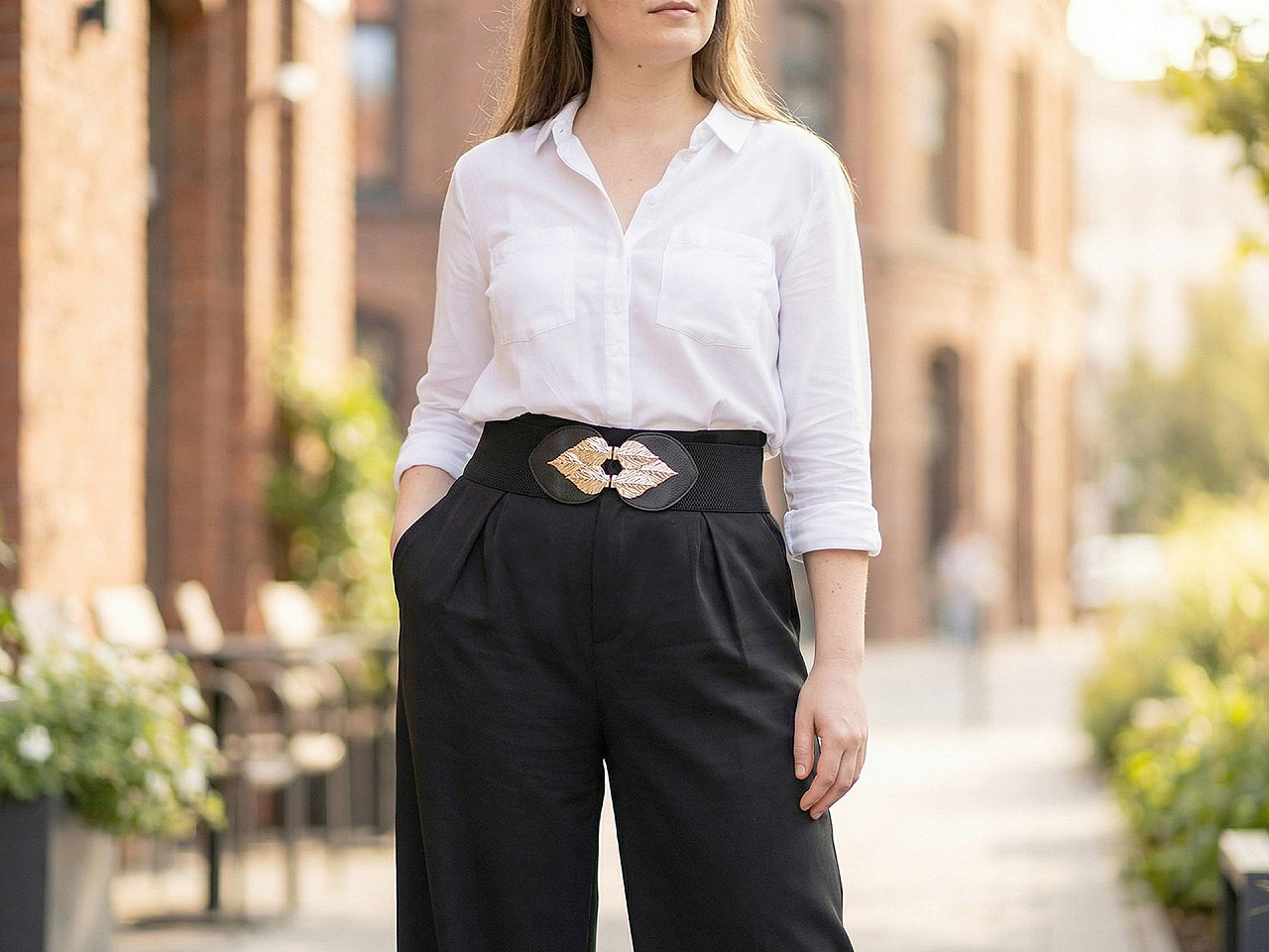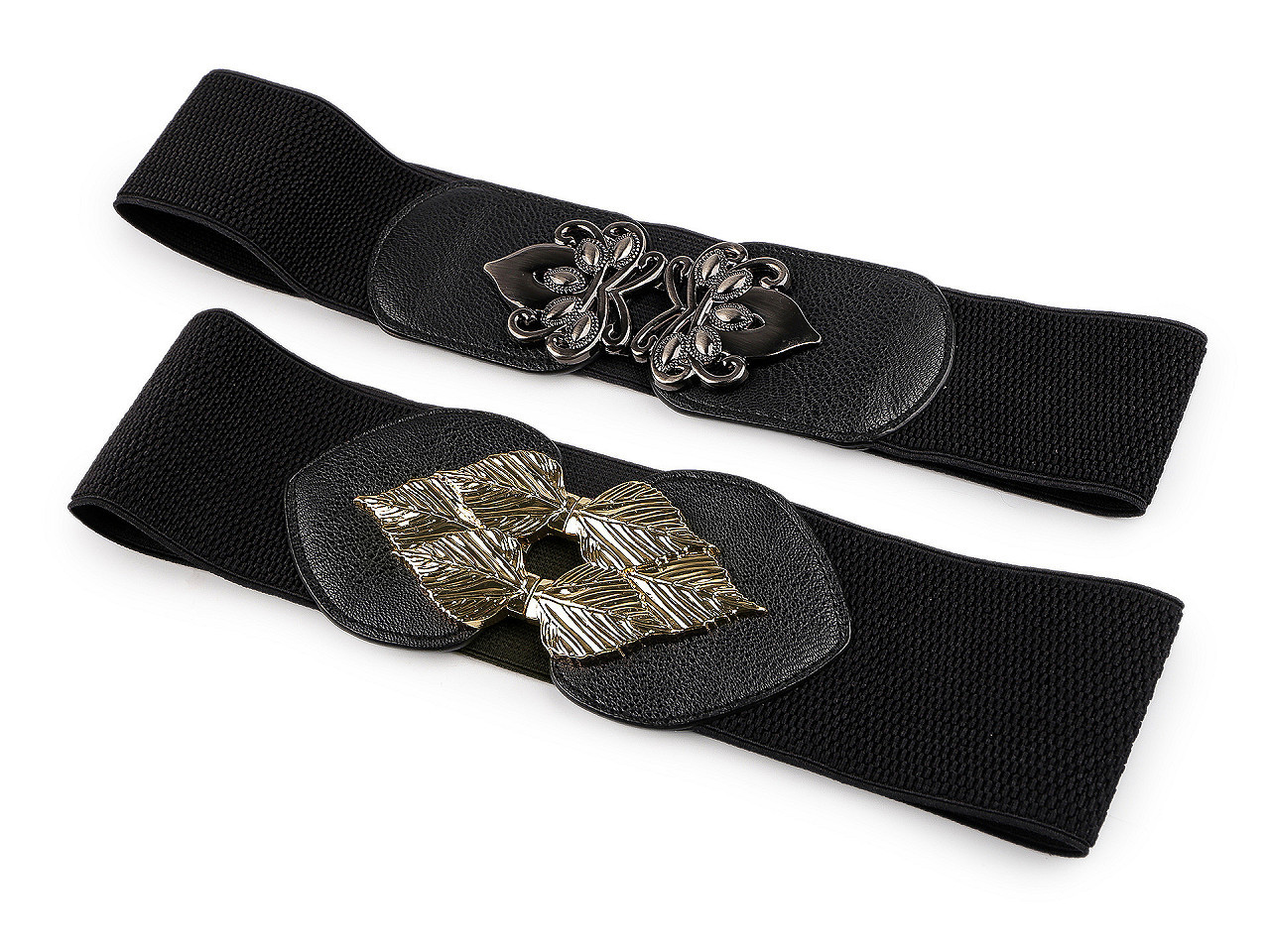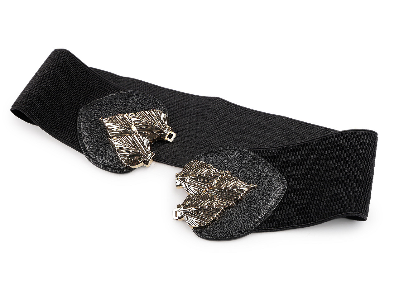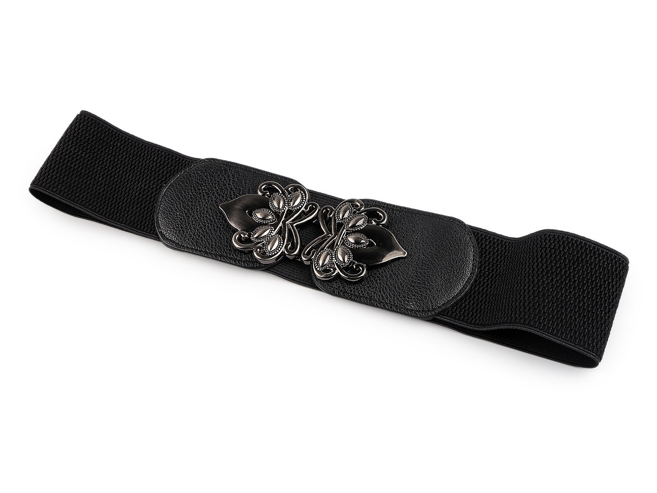 Pružný dámský pásek je vhodný pro nošení k šatům, tunikám apod. Vyniká svou velkou šířkou, má výraznou elegantní sponu, která se zapíná na háčky a očka.
